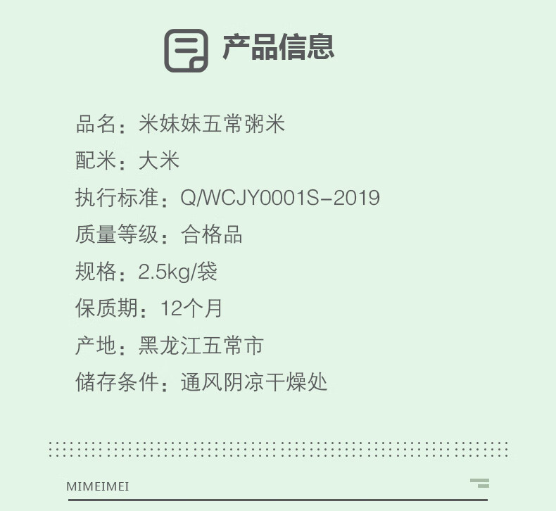 米妹妹/MIMEIMEI M080 大米 米妹妹五常粥米2.5kg