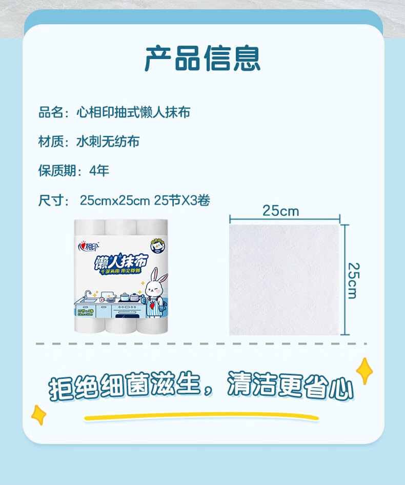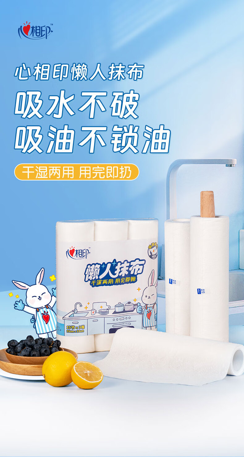 心相印/MindActUponMind JXF075 抹布 心相印卷式懒人抹布25张*3卷
