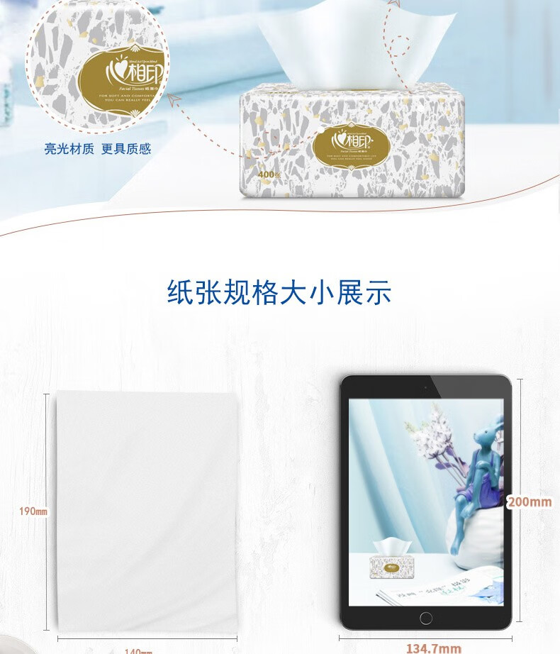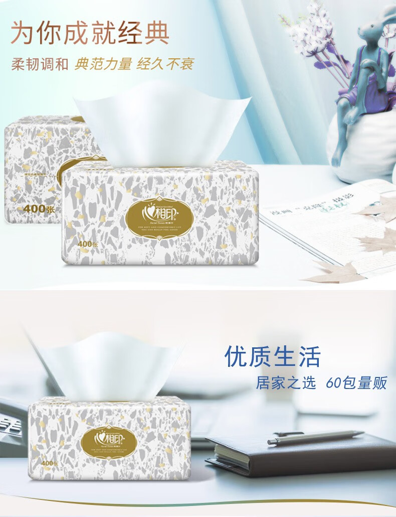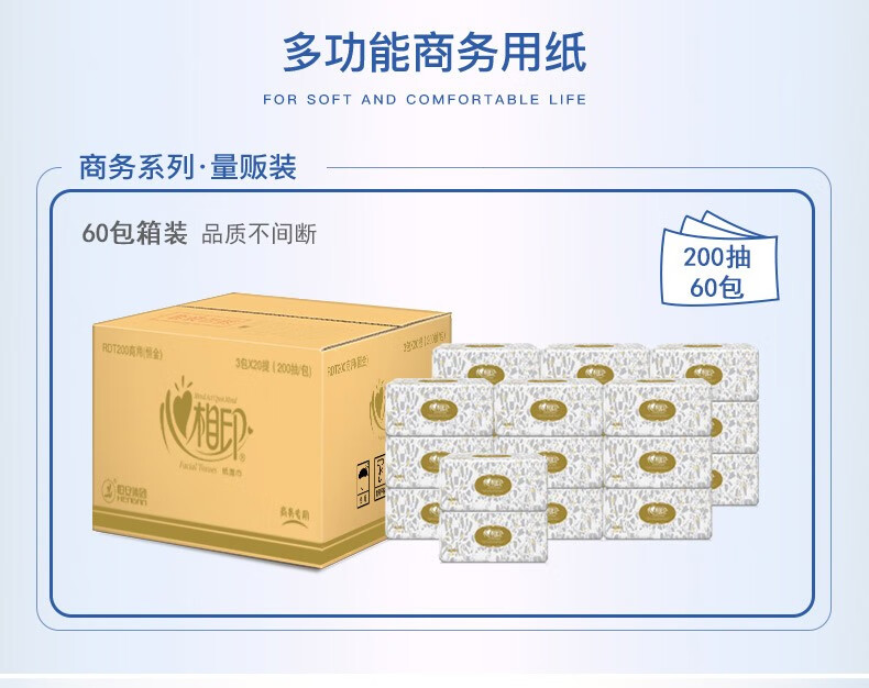 心相印/MindActUponMind RDT200 软包抽取式面纸 (箱装)商用恒金塑装纸面巾(60包)