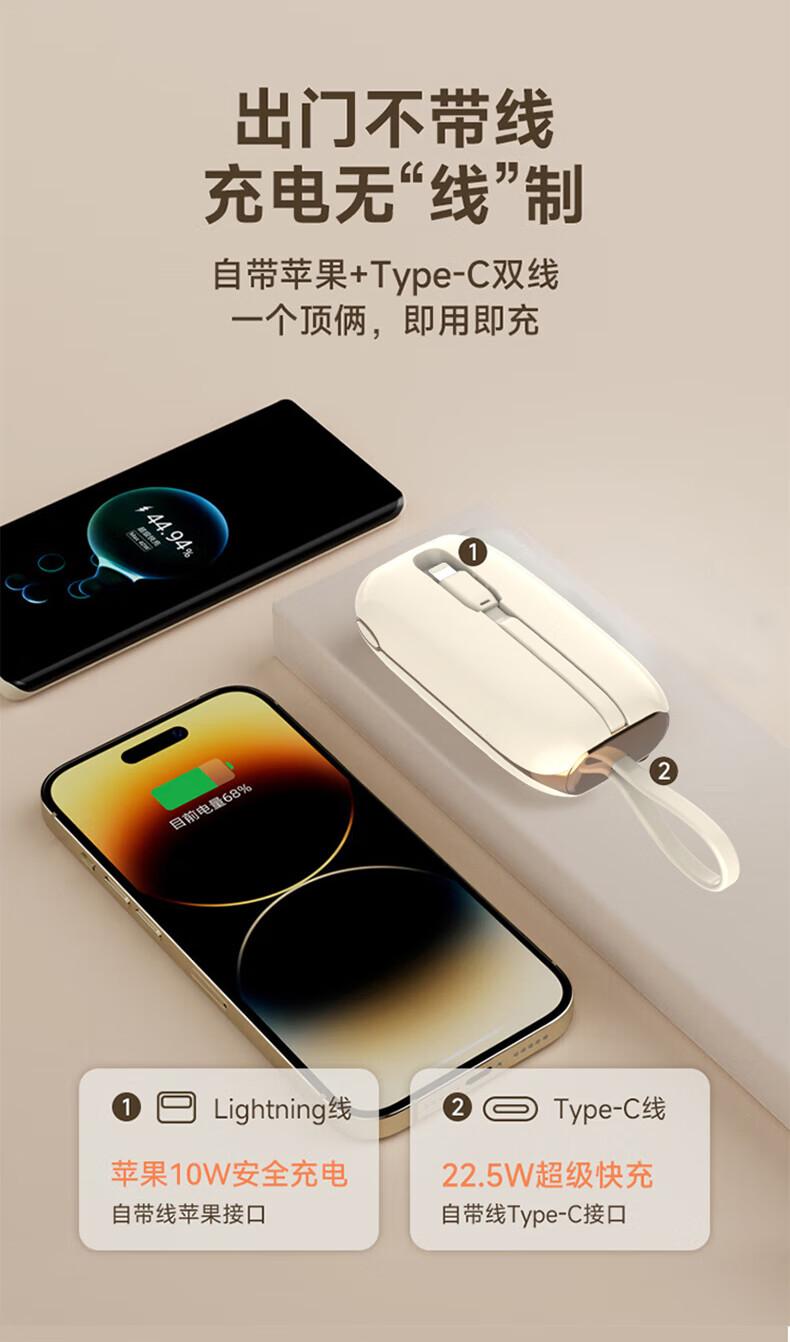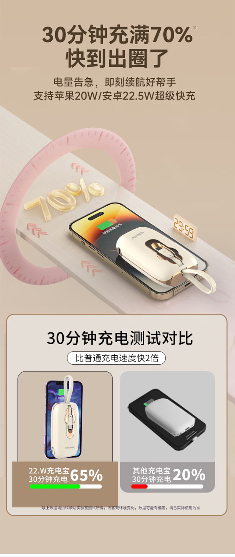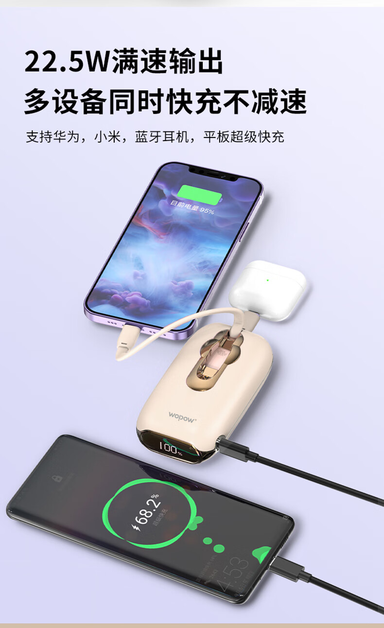沃品/WOPOW LQ06 手机充电器 双向快充充电宝自带双线小巧便携可上飞机移动电源LQ06 紫色