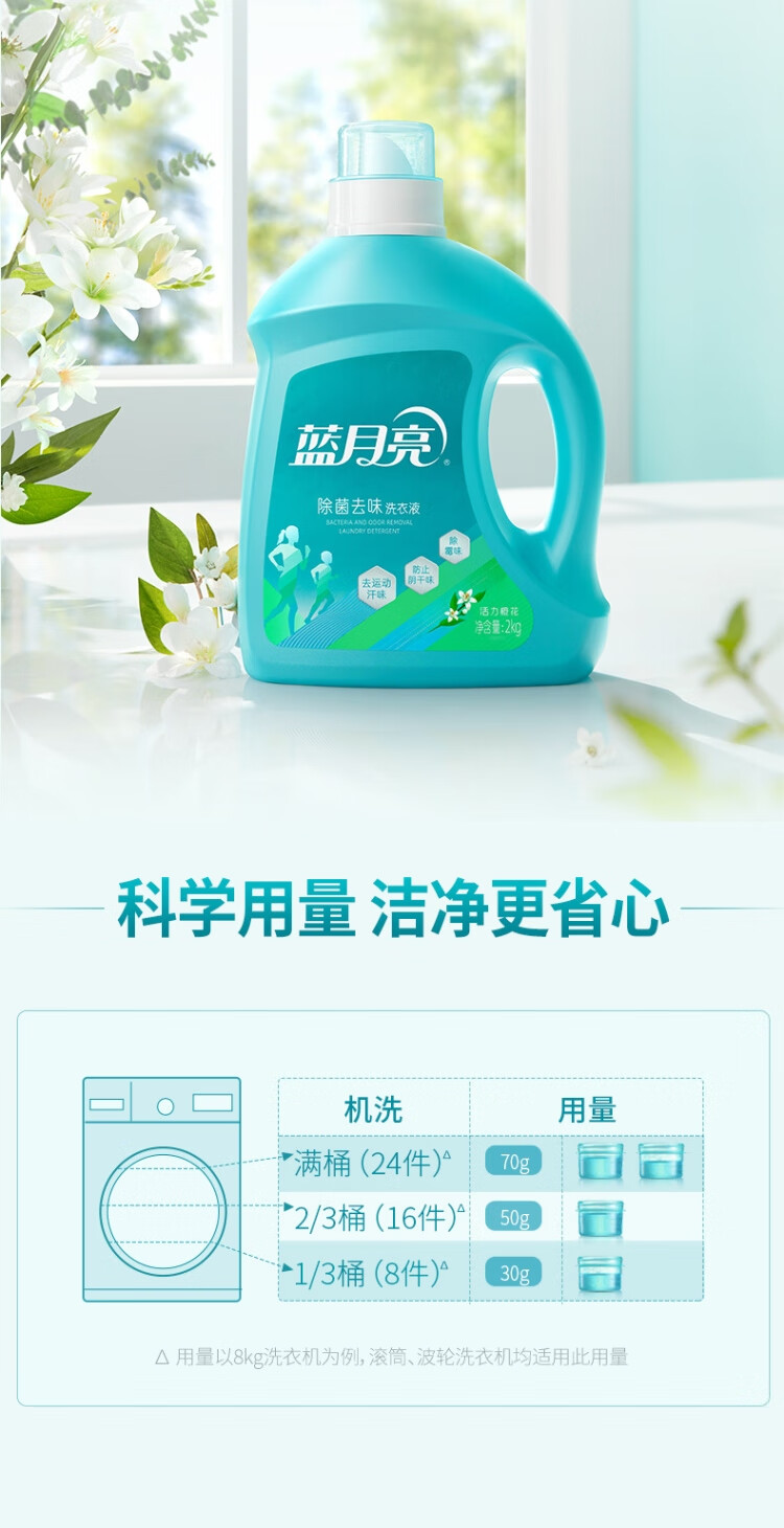 蓝月亮/Bluemoon 2kg×2+500g洗衣液/洗衣粉 活力橙花除菌去味洗衣液2kg×2+风清白兰手500g