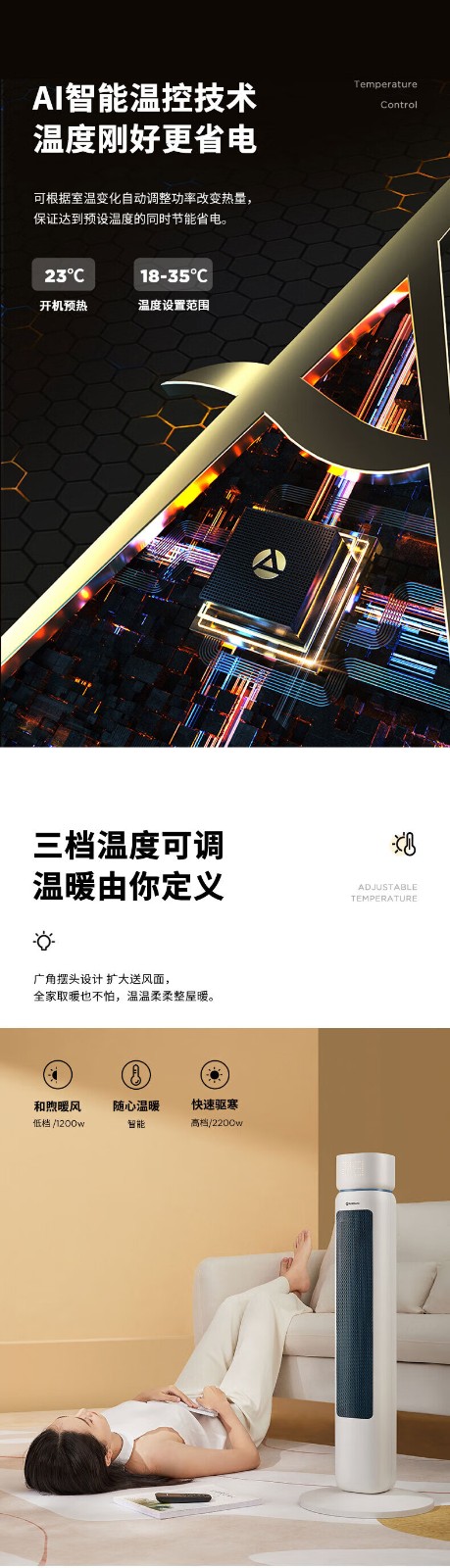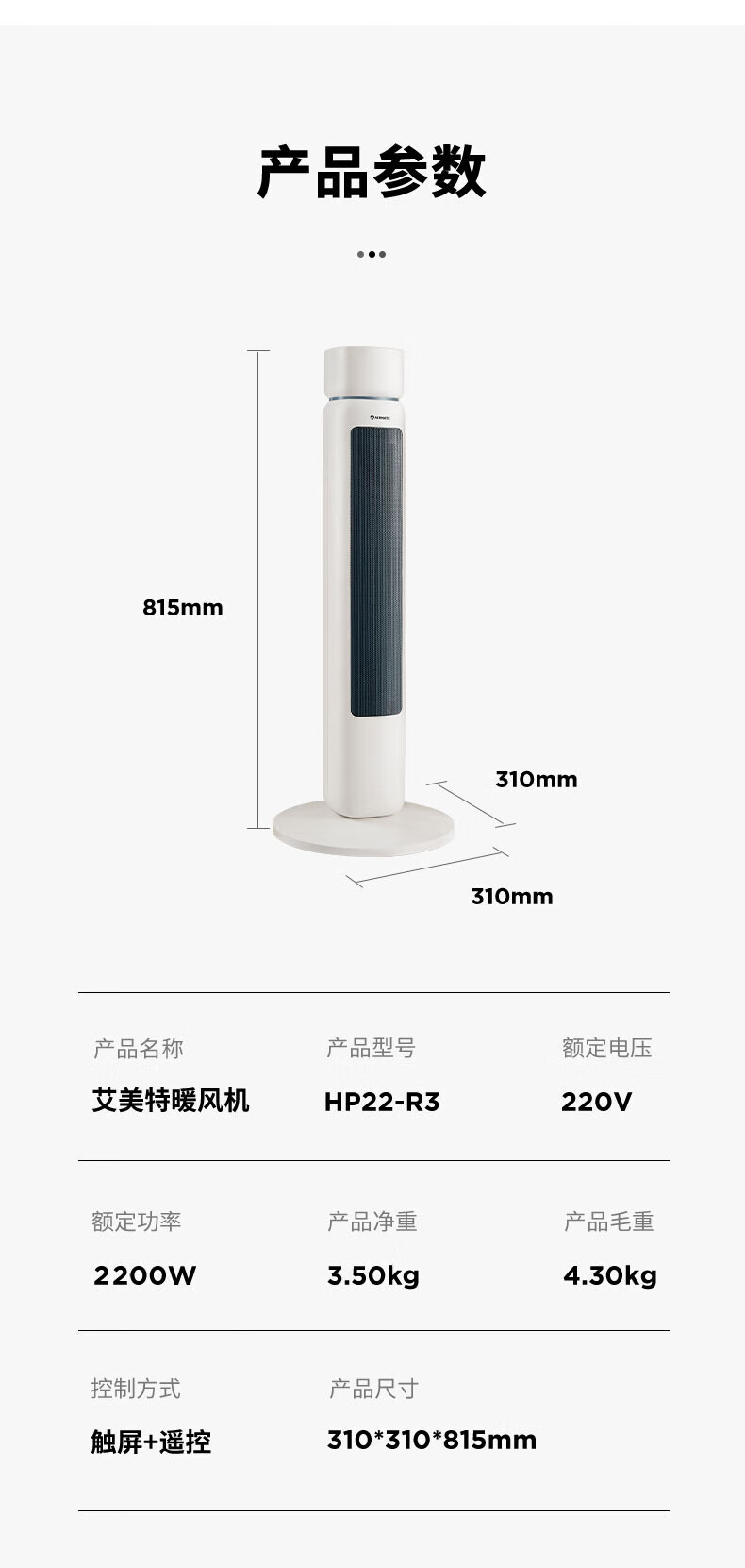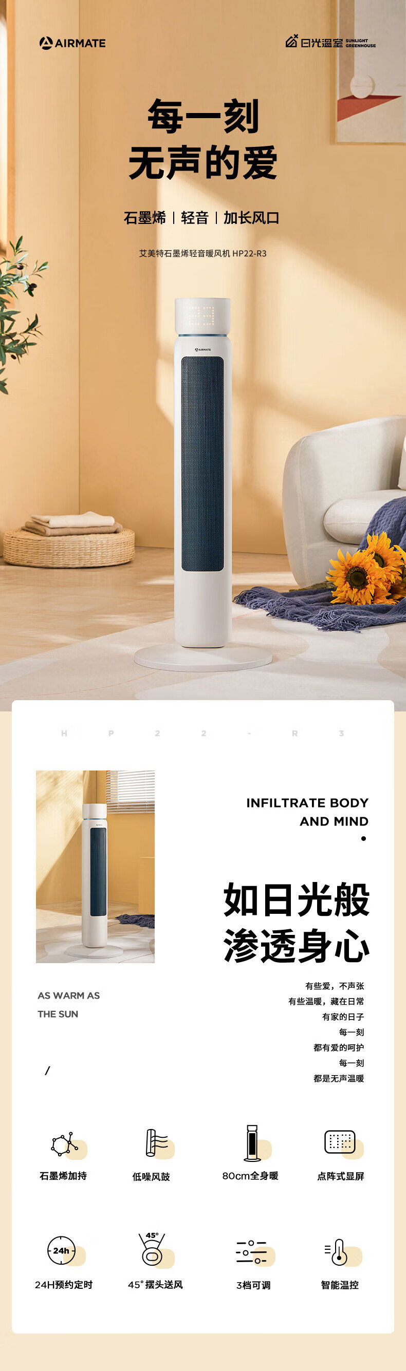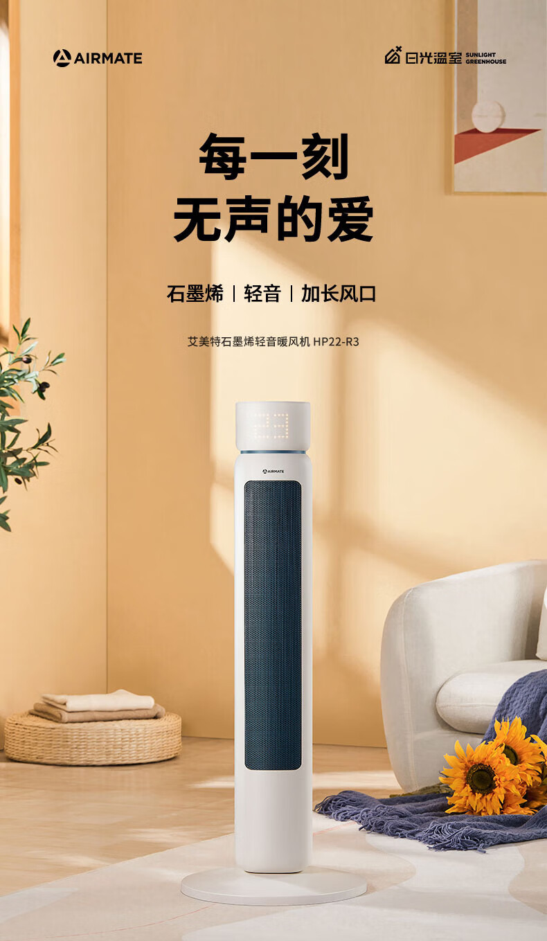 艾美特/Airmate HP22-R3取暖器 石墨烯取暖器 AI智能控温3档调温90度摇头断电保护