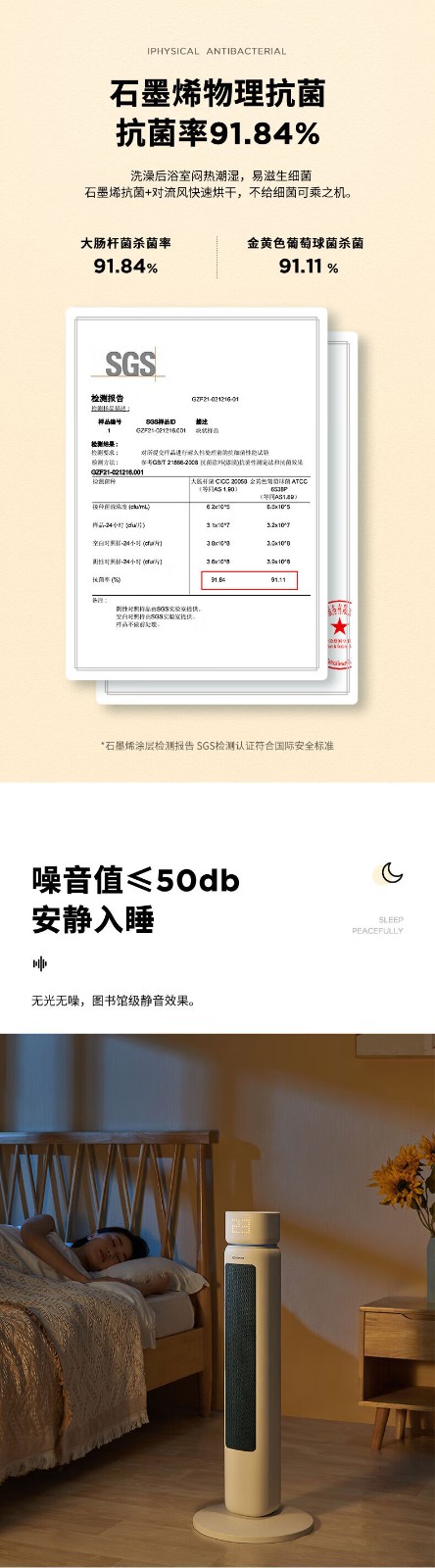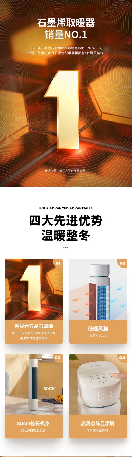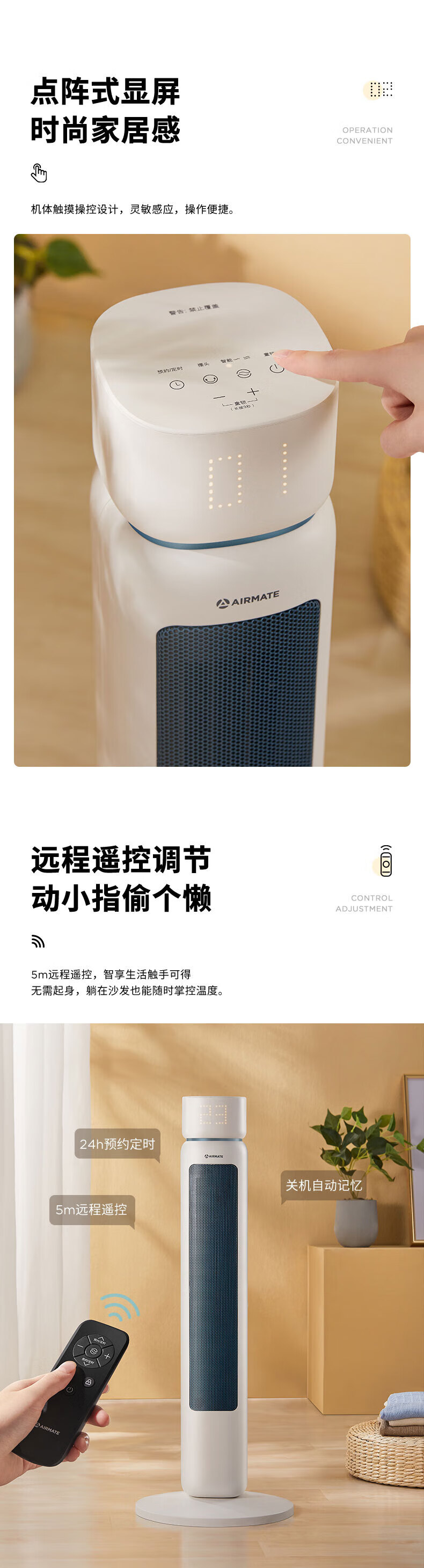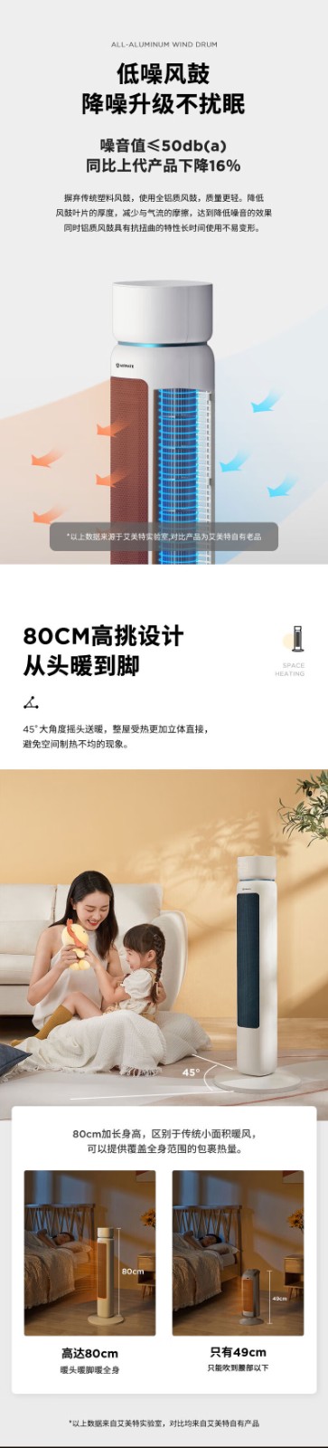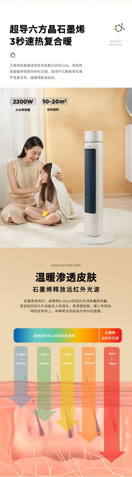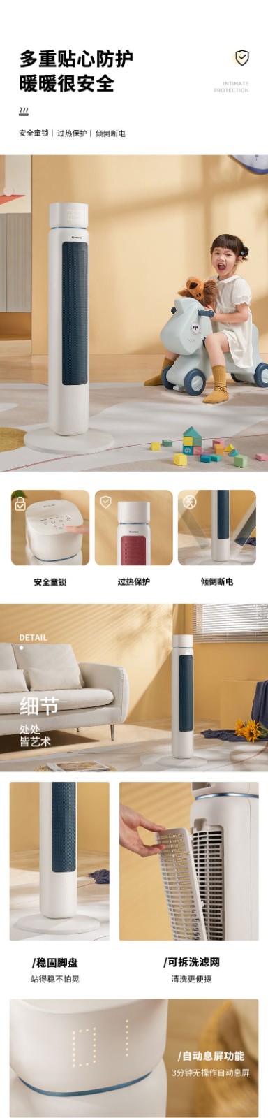 艾美特/Airmate HP22-R3取暖器 石墨烯取暖器 AI智能控温3档调温90度摇头断电保护