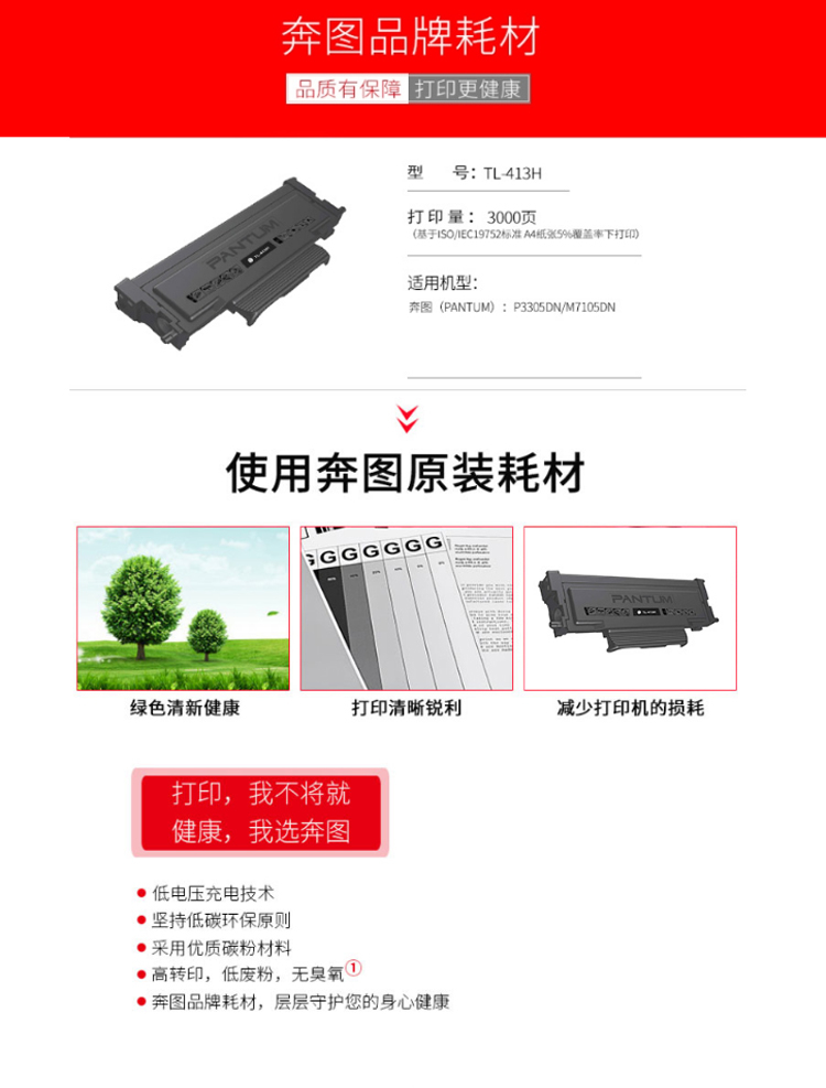 奔图/PANTUM TL-413H 粉盒 原装黑色大容量粉盒 适用奔图P3305DN/M7105DN 五只起