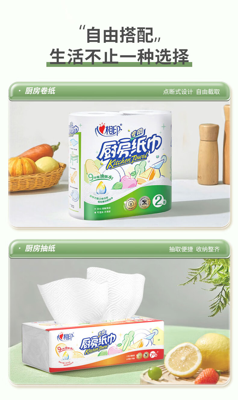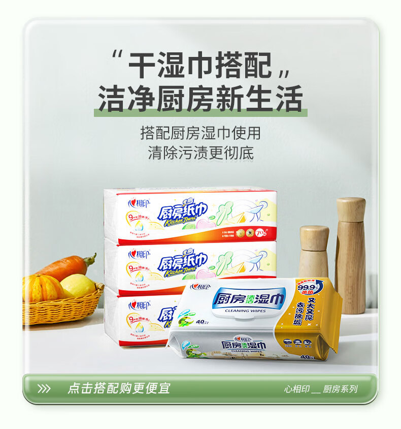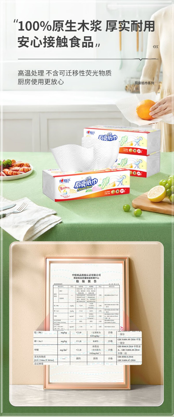 心相印/MindActUponMind KDT170 软包抽取式面纸 70抽塑装无印花厨房纸巾 3包*4提-箱装