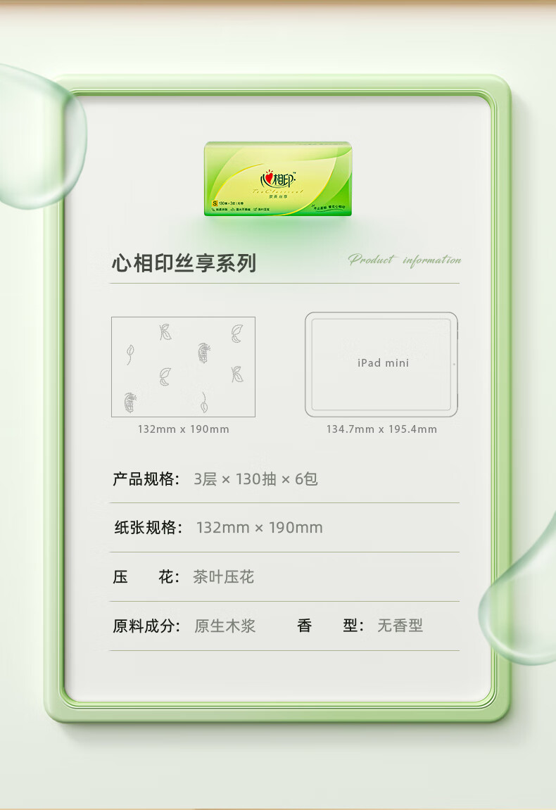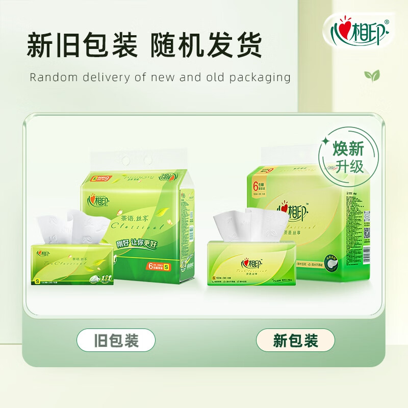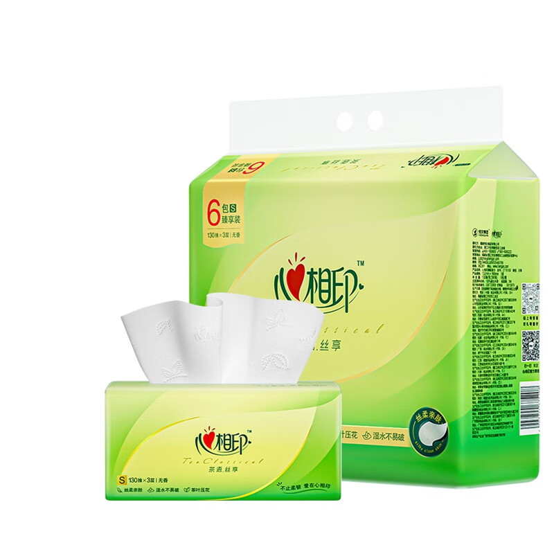 心相印/MindActUponMind DT15130 软包抽取式面纸 心相印茶语丝享系列130抽三层塑装纸面巾6包(新老包装随机发货)