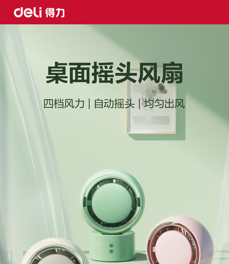 得力/deli LK107 风扇 充电摇头电风扇小风扇办公室桌面风扇小型迷你便携usb 粉色