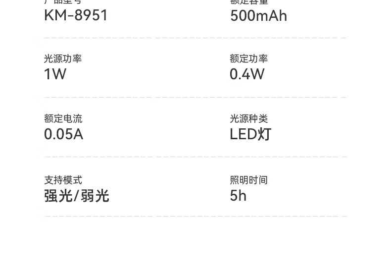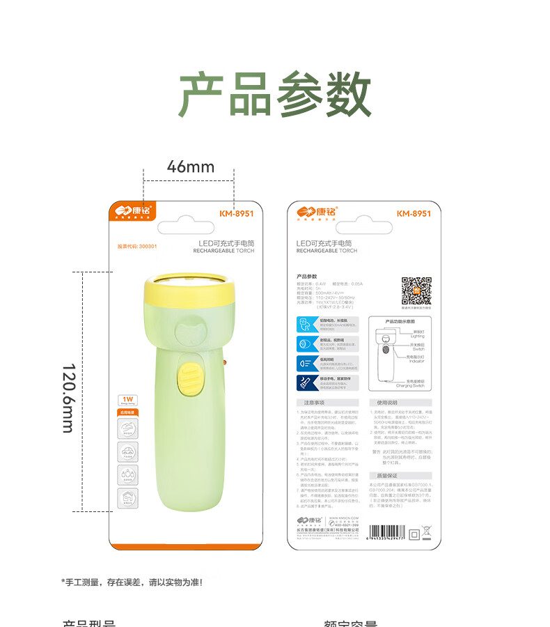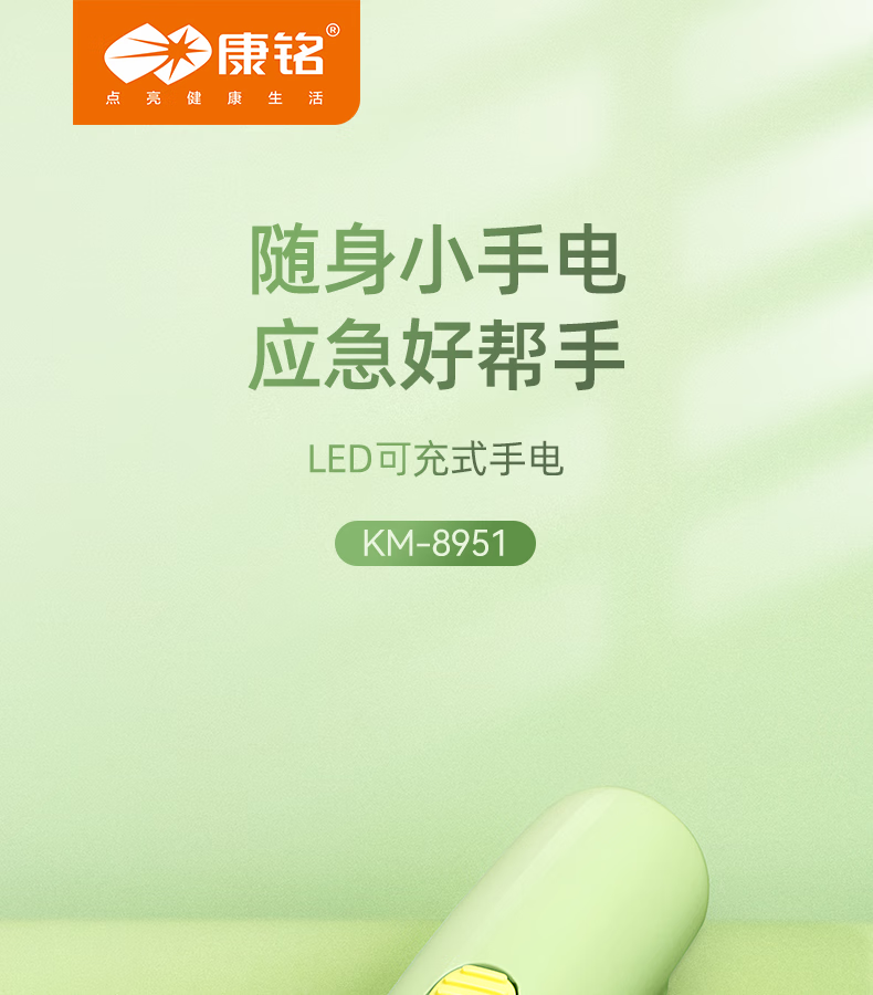 康铭/KANGMING KM-8951 应急照明灯强光手电筒可充电超亮远射家用户外小型迷你便携