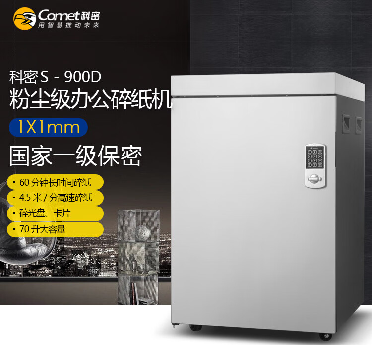 科密/Comet S-900D 碎纸机 国家保密认证一级 1*1毫米 碎光盘 卡 纸 (8张/次 60分钟 70L)