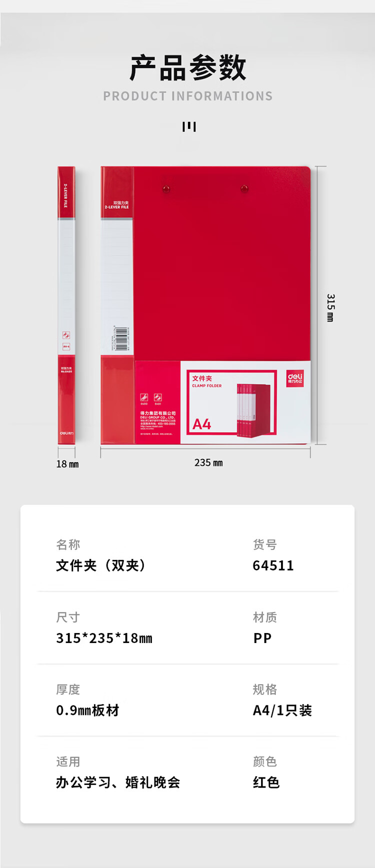 得力/deli 64511 文件夹 A4双强力夹文件夹 加厚诗朗诵签约夹板