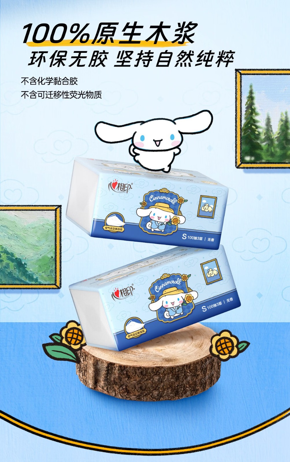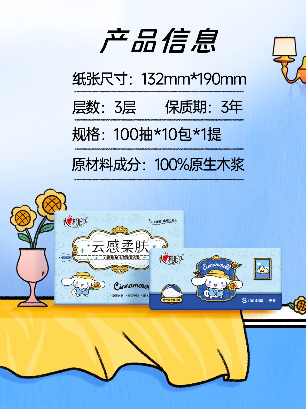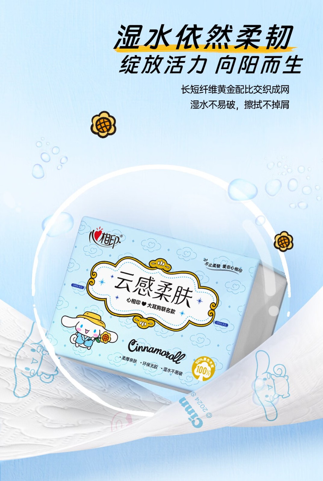 心相印/MindActUponMind DT17100 软包抽取式面纸 心相印云感100抽20包三层立体压花塑装面巾纸三丽鸥联名款