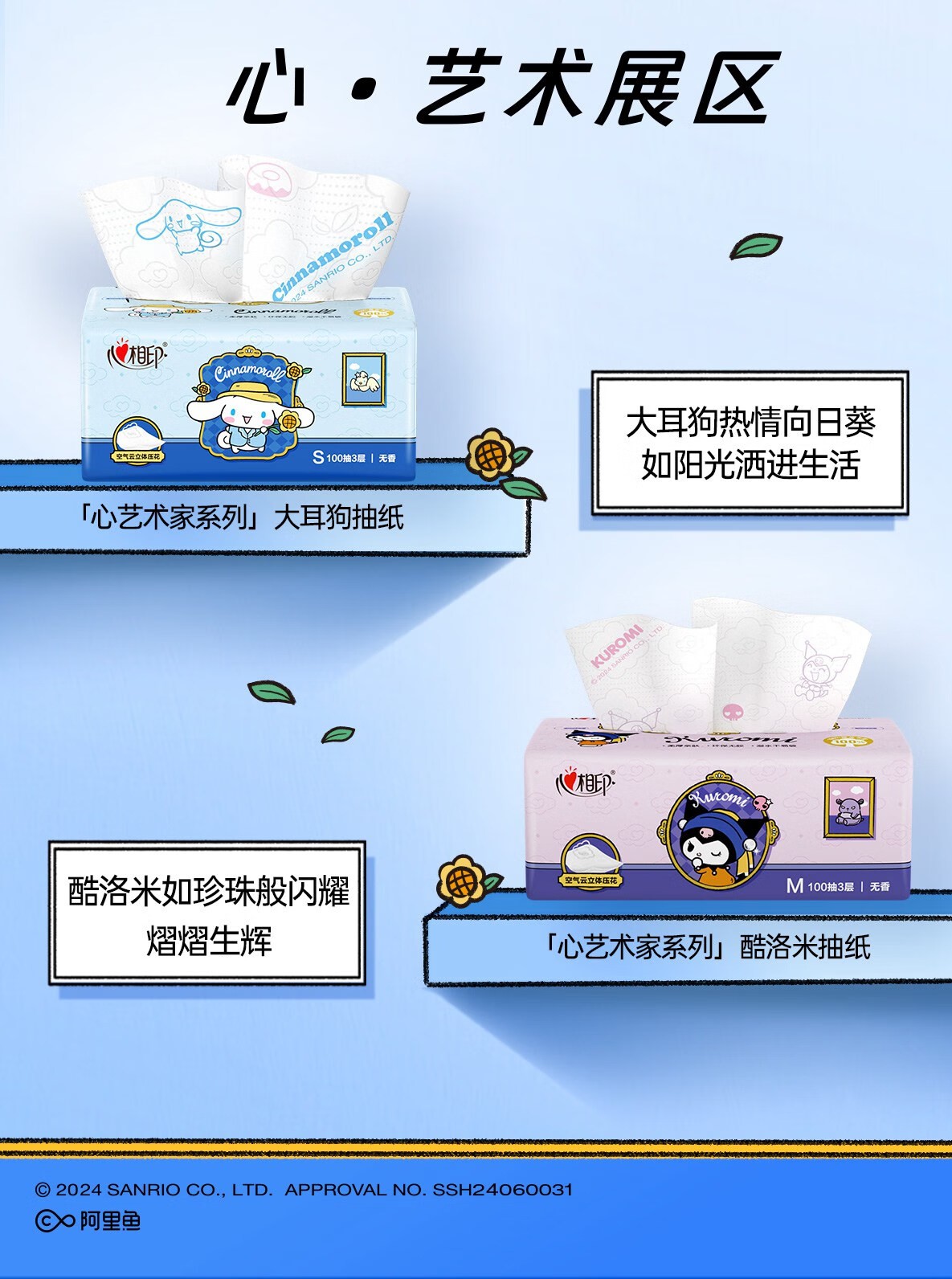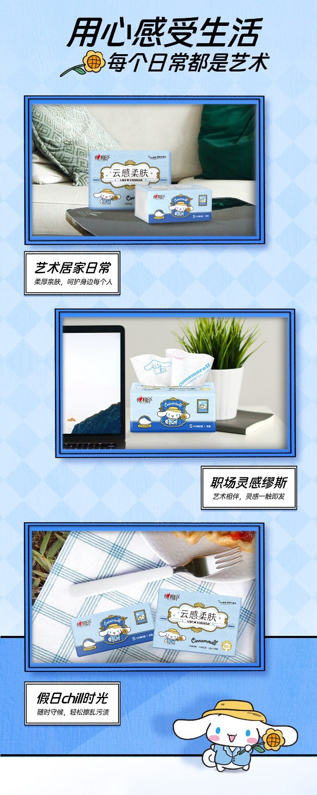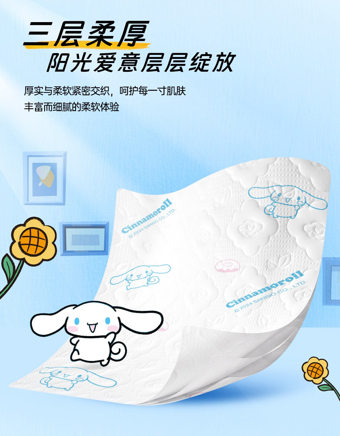 心相印/MindActUponMind DT17100 软包抽取式面纸 心相印云感100抽20包三层立体压花塑装面巾纸三丽鸥联名款