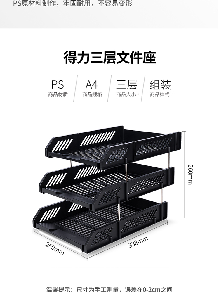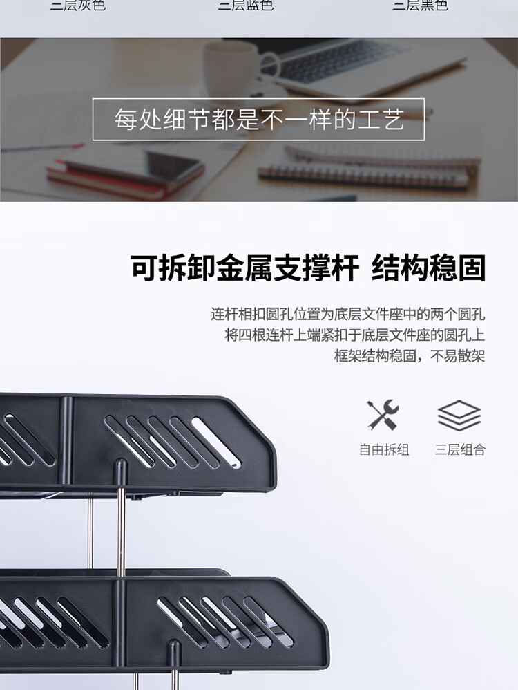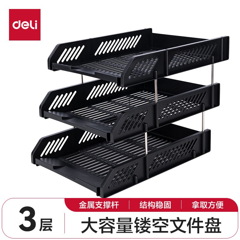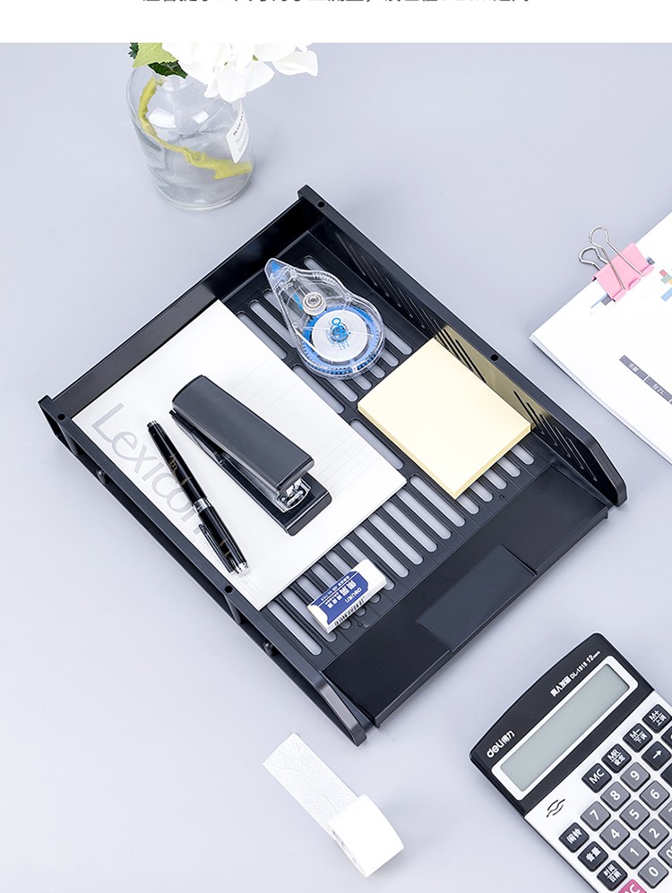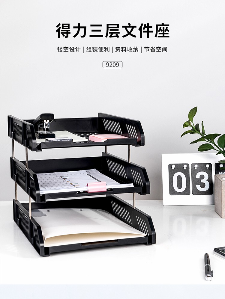 得力/deli 9209 文件筐 三层镂空收纳文件座自由拆卸组装文件盘