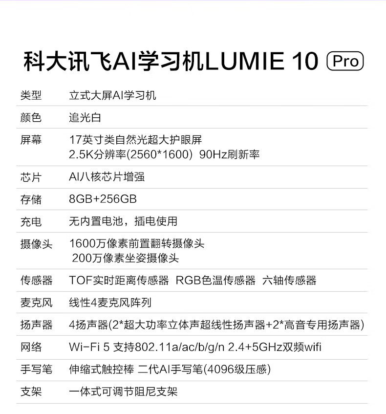 科大讯飞/iFLYTEK LUMIE10 Pro平板式微型计算机 (8+256GB) 支持DeepSeek 小学初中高中大屏护眼平板 17英寸