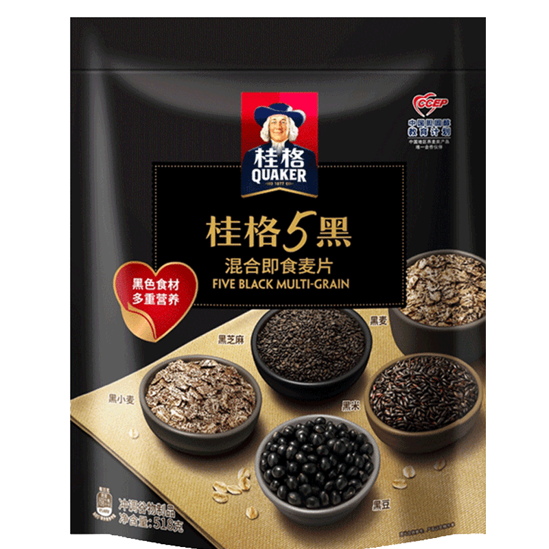 桂格/QUAKER 518 纯燕麦片 5黑5红5白混合装袋装燕麦片即食懒人早餐代餐 5黑518g+5白460g+5红480g