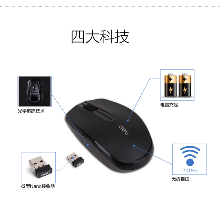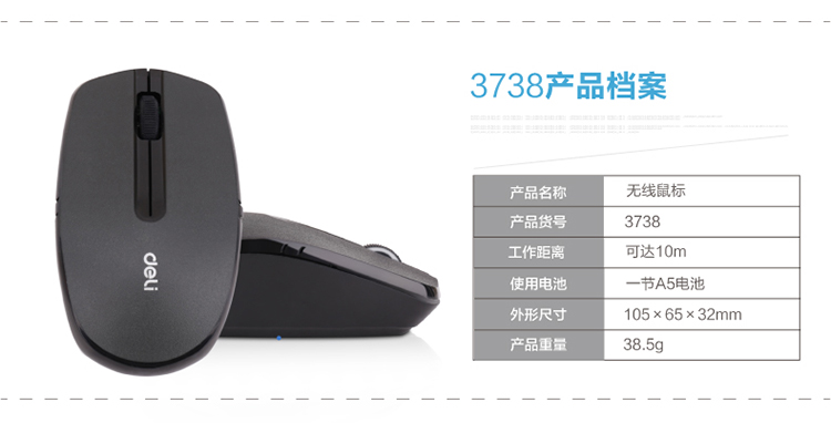 得力/deli 3738 鼠标 无线游戏笔记本鼠标 电脑鼠标 3738黑色无线