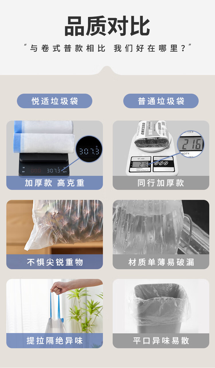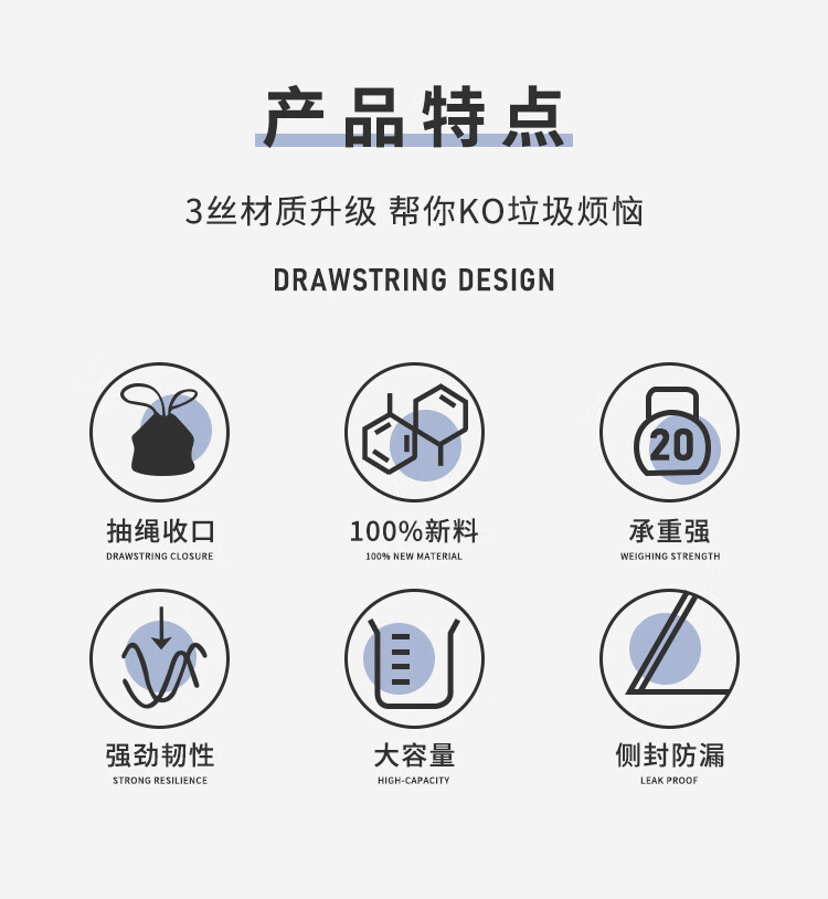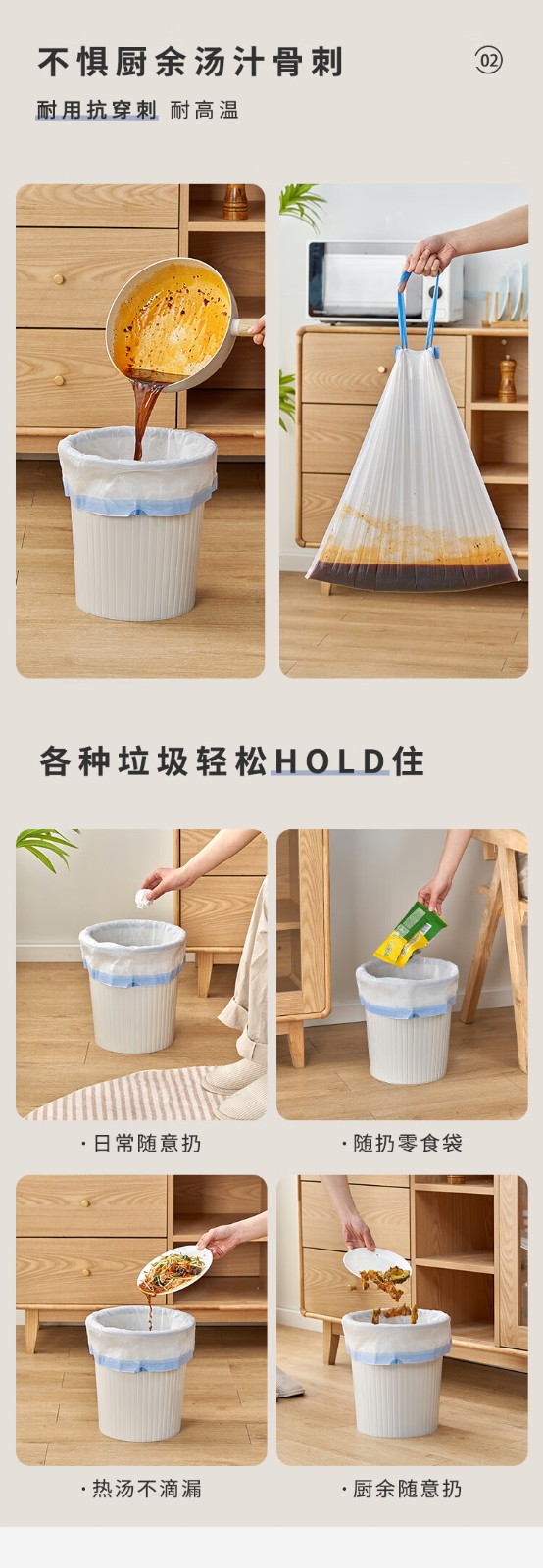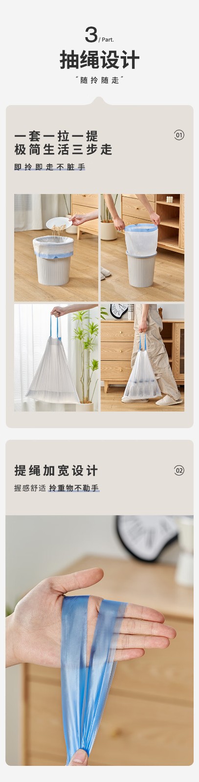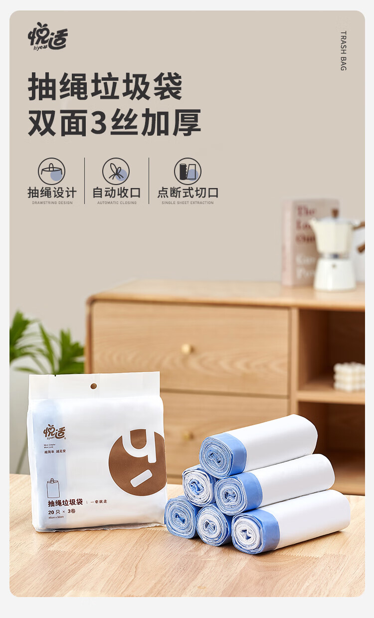 悦适/h\'yeas 3QZCKE060 塑料制品 (包装)悦适抽绳式清洁袋垃圾袋白色3(45cm*50cm)60只装*3包