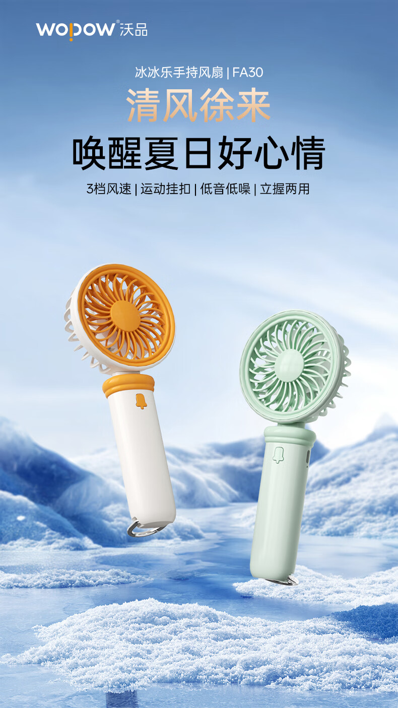 沃品/WOPOW FA30 风扇 便携充电小风扇迷你静音大风力手持高速风扇FA30 米色 300mAh