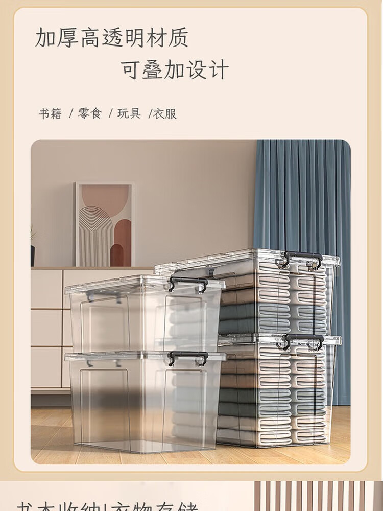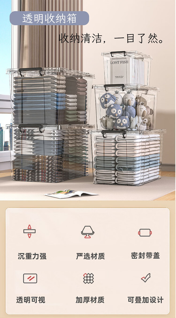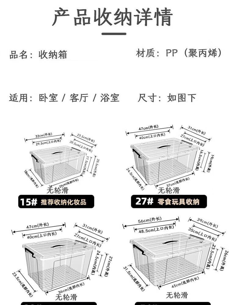 优品/YOPOW 56*39*26cm 塑料制品 收纳箱透明 个