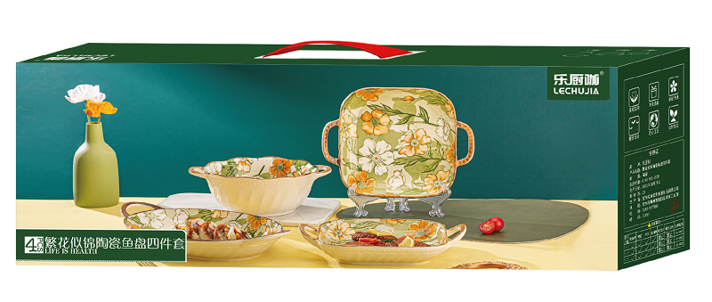 银泰/PMI YTFHSJ/L4盘 繁花似锦陶瓷鱼盘四件套