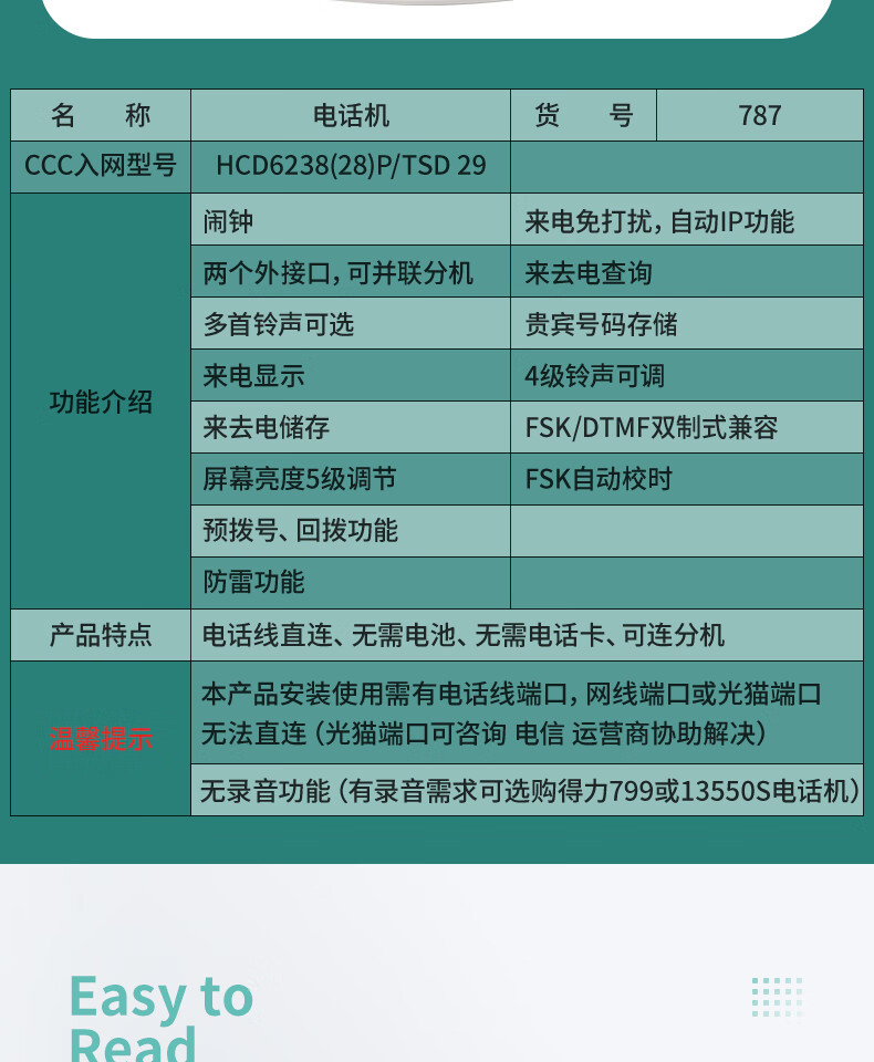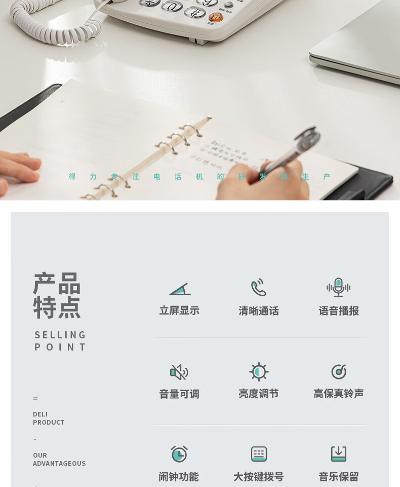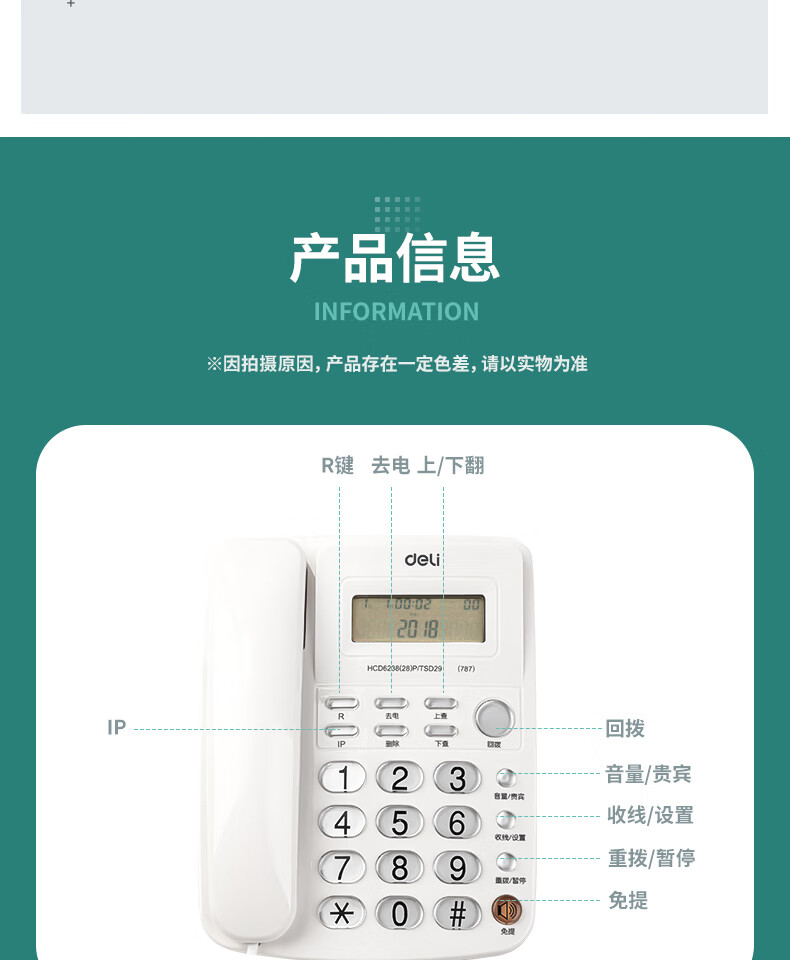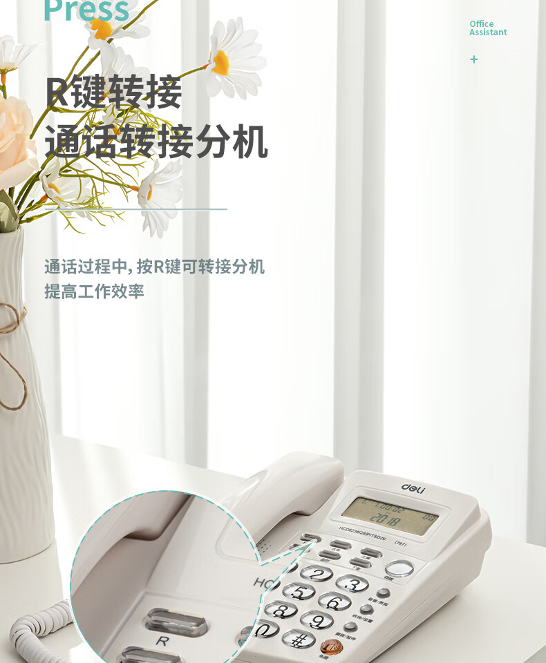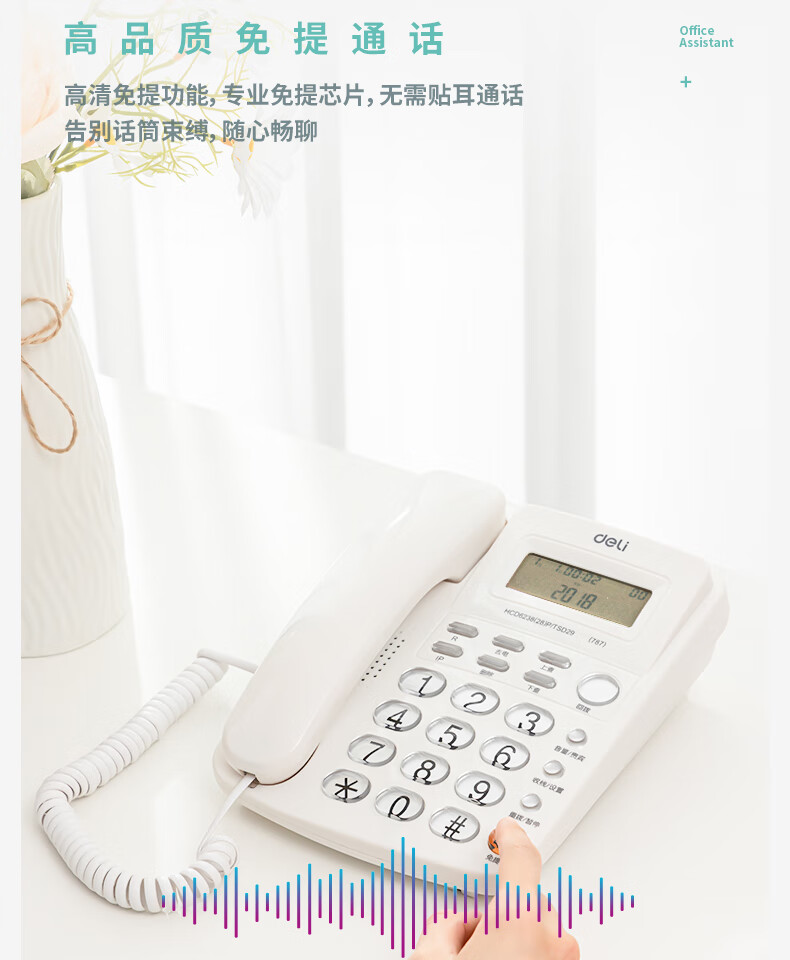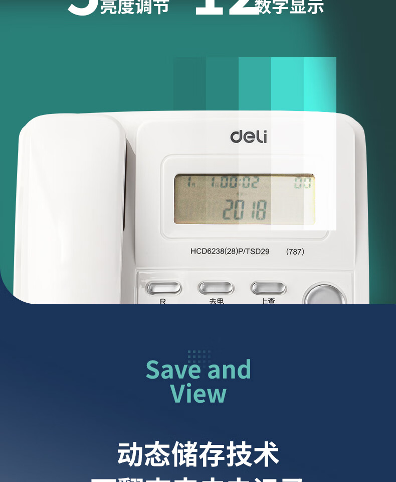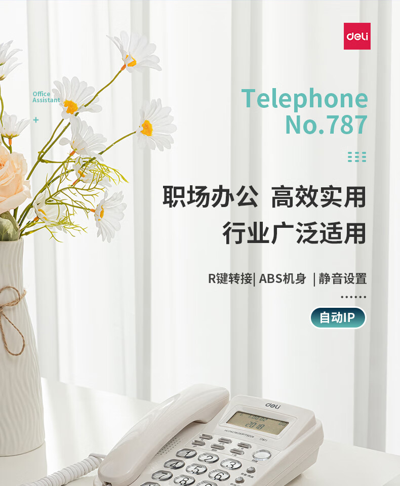 得力/deli 787 普通电话机 来电显示办公家用电话机固定电话座机 白色