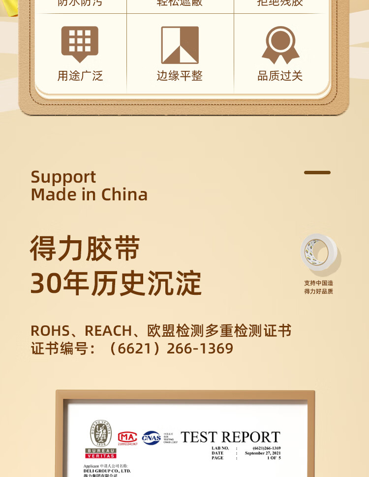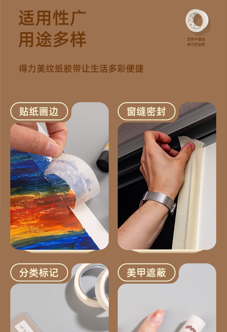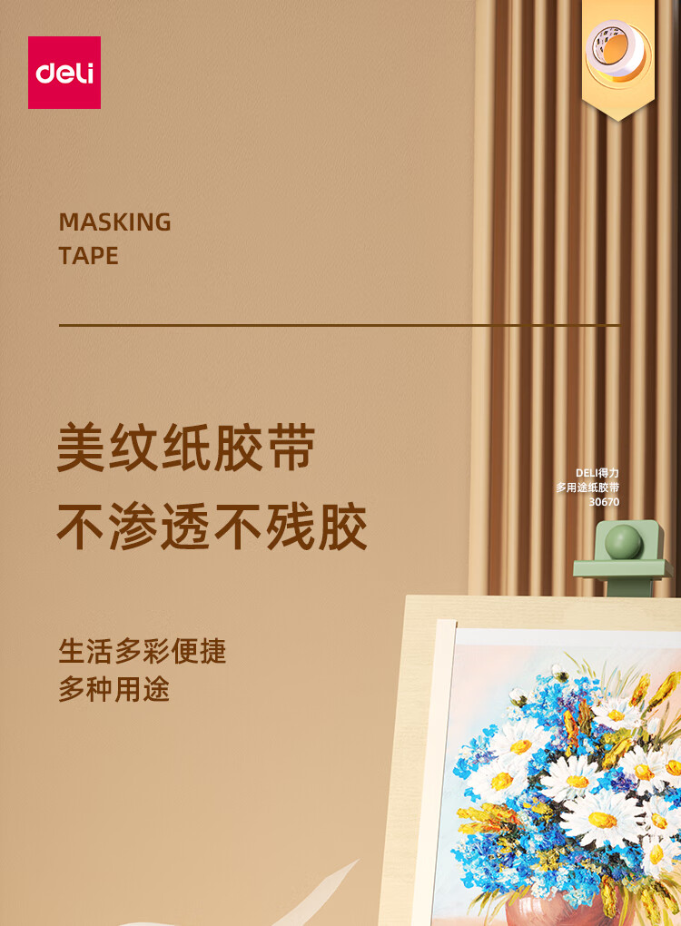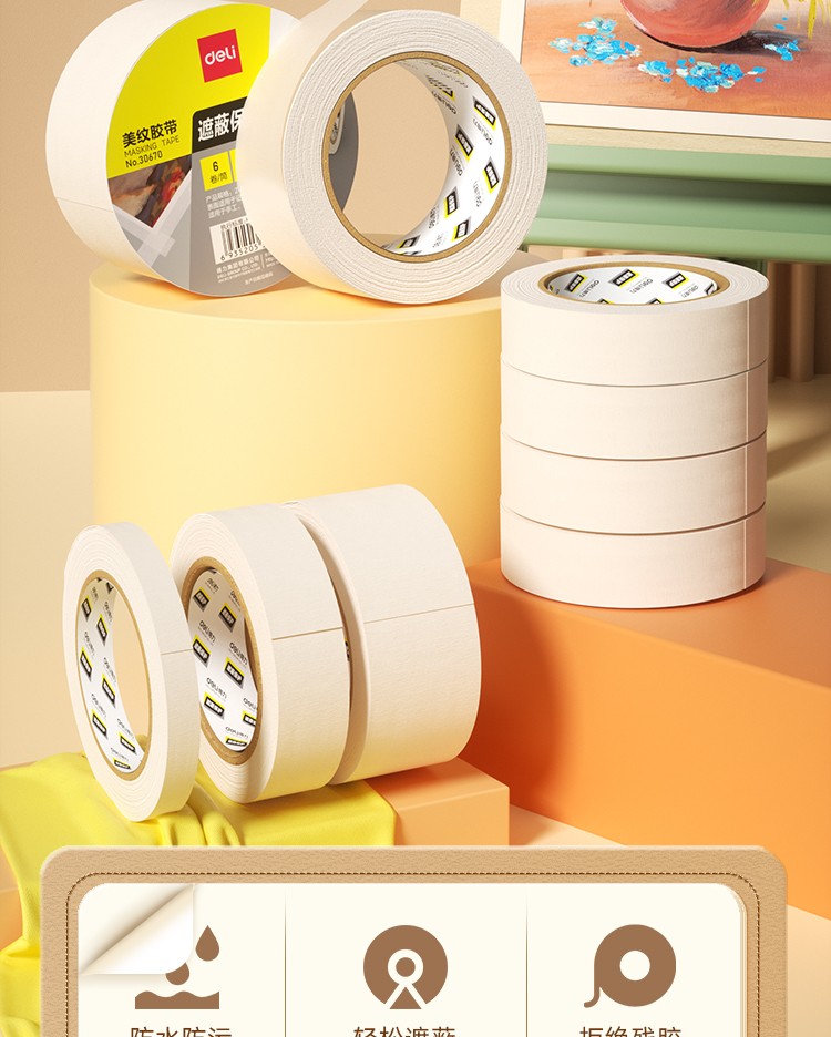 得力/deli 30670 胶带 24mm*20y*145μm 美术美工分色 装修遮蔽美缝贴膜刷漆保护无痕 学习用品 6卷