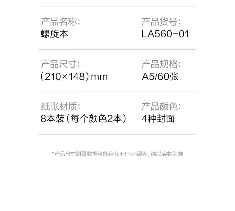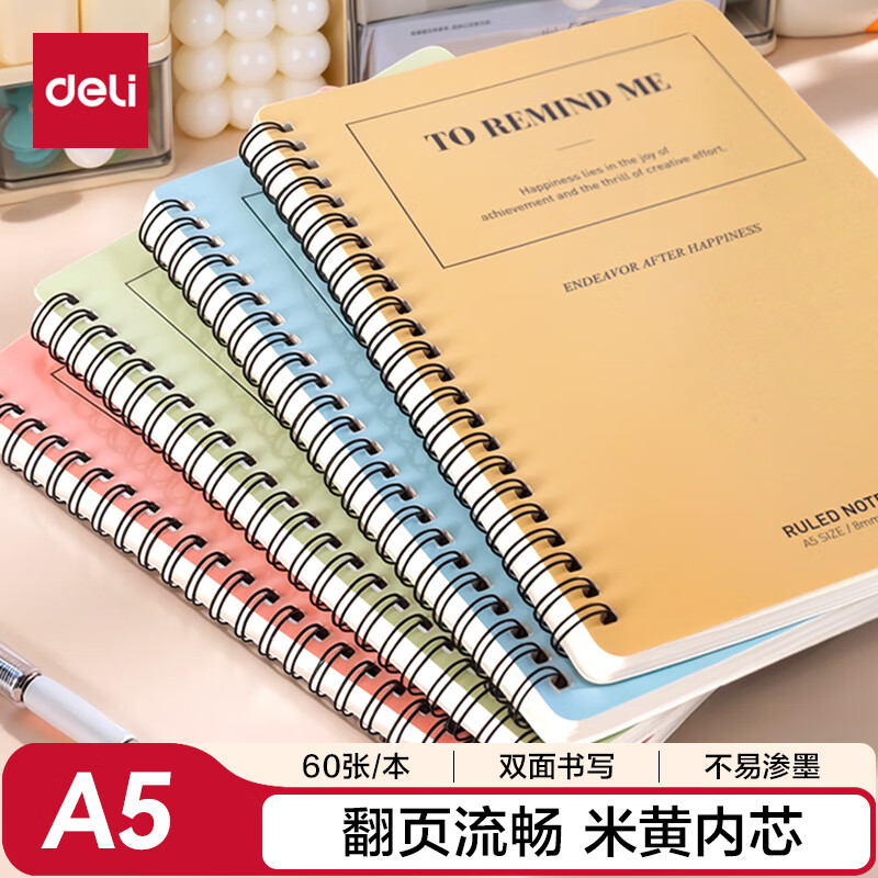 得力/deli LA560 薄本册 8本A5/60张笔记本子线圈本 简约螺旋本错题本练习本