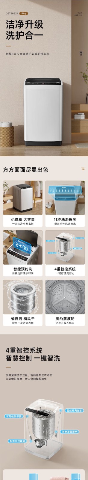 创维/Skyworth GT80S24洗衣机 清雅灰 8公斤波轮洗衣机