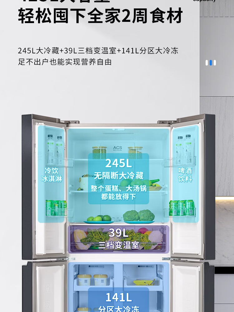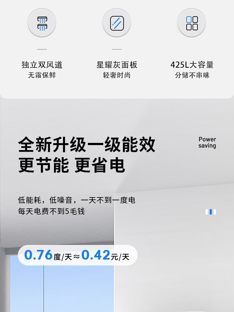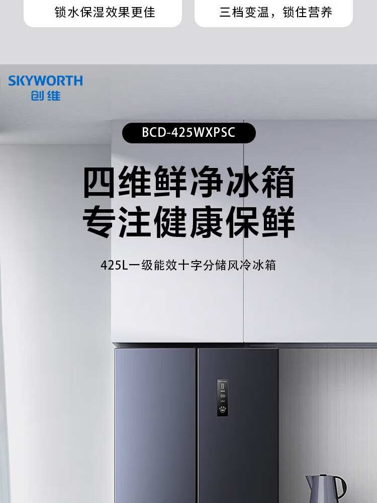 创维/Skyworth BCD-425WXPSC电冰箱 星耀灰 风冷十字冰箱 425L