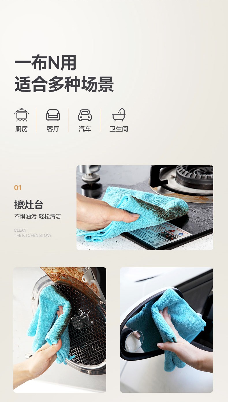 茶花 35*35 运动毛巾 多色混发 去油污厨房加厚除尘家政擦玻璃清洁布