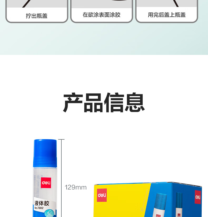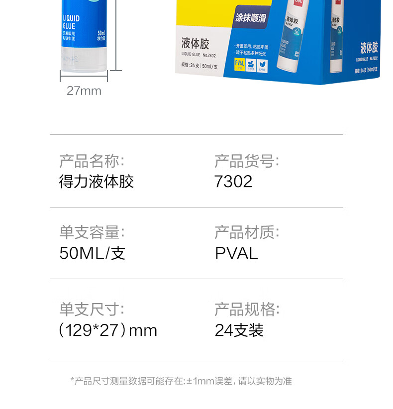 得力/deli P07302 胶棒/固体胶/胶水 50ml高透明胶水 可水洗高粘液体胶 手工DIY学生文具手 开学必备学习用品 24支装