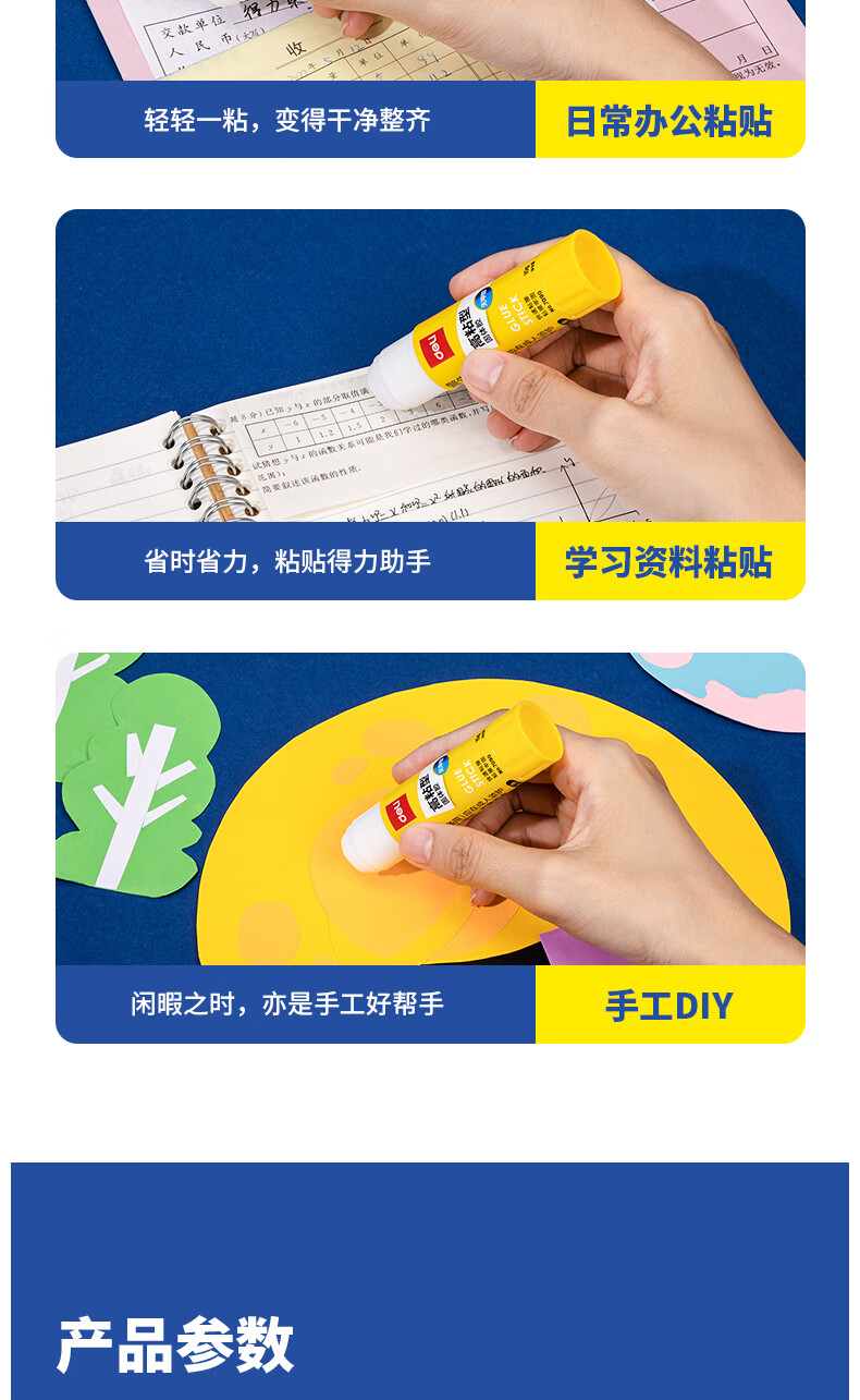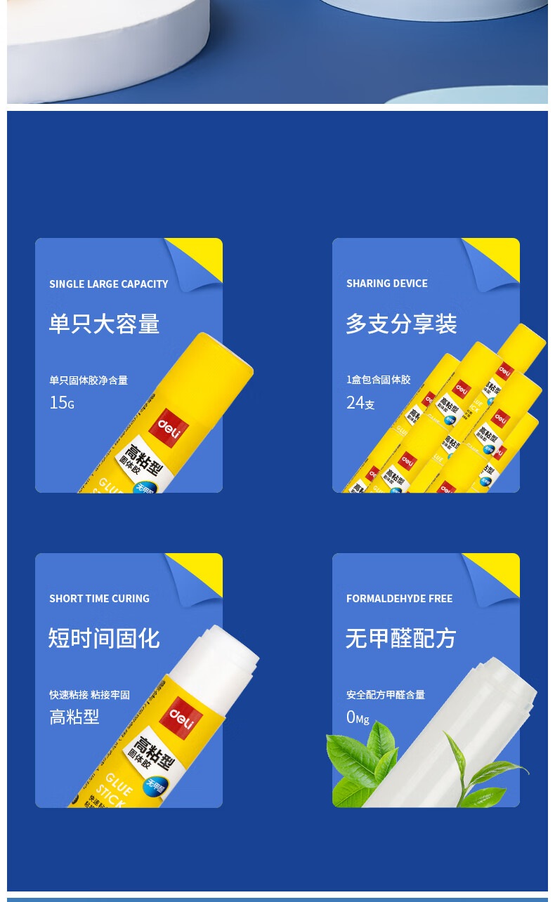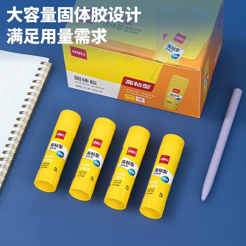 得力/deli 27050 胶棒/固体胶/胶水 15g高粘度PVP固体胶水 强力粘接 无甲醛快干耐用胶棒 学生文具 24支装