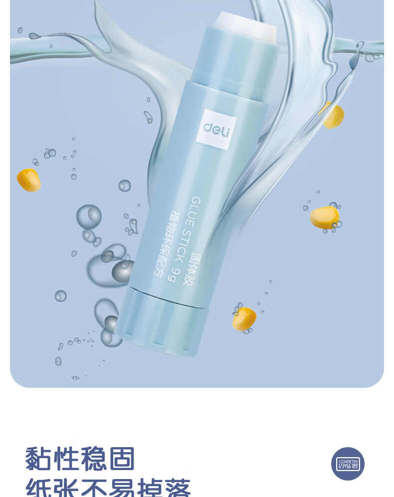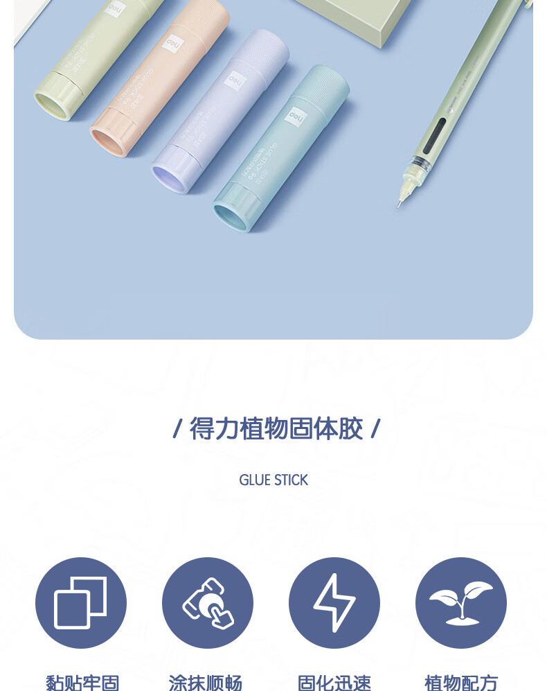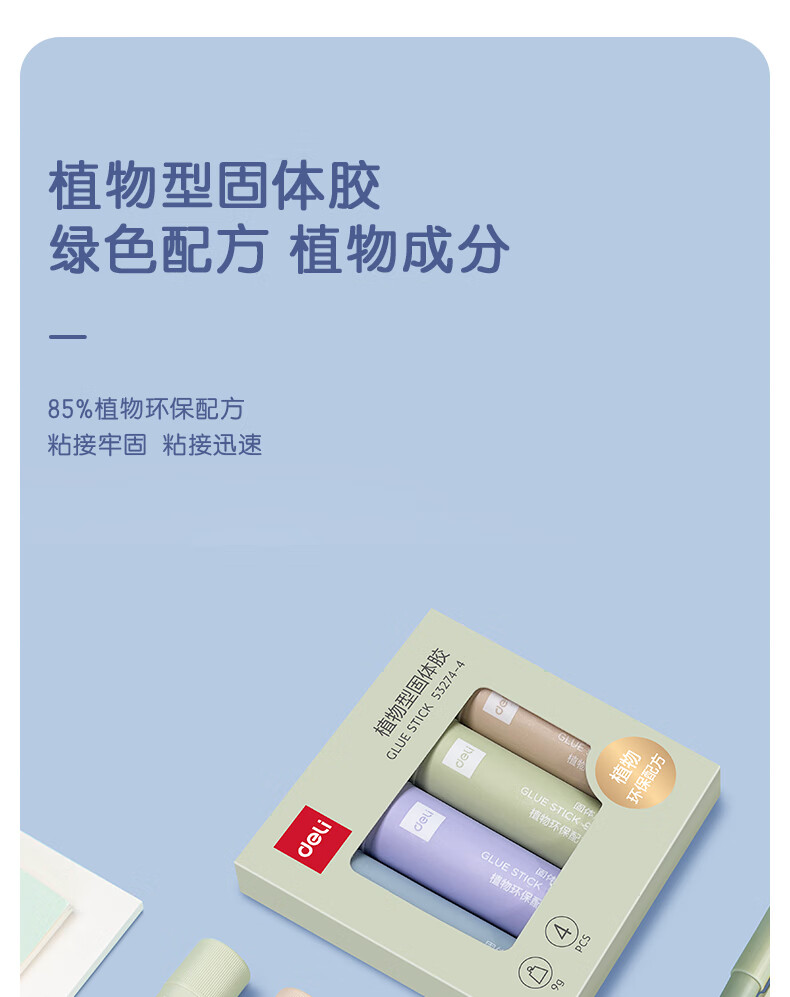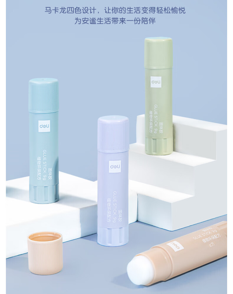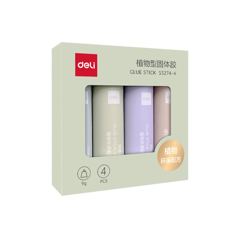 得力/deli 53274-4 胶棒/固体胶/胶水 9g植物型固体胶水 高粘度无甲醛绿色配方 高颜值学生文具 办公用品 4支/盒