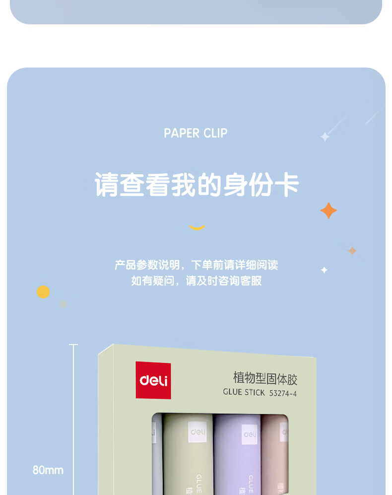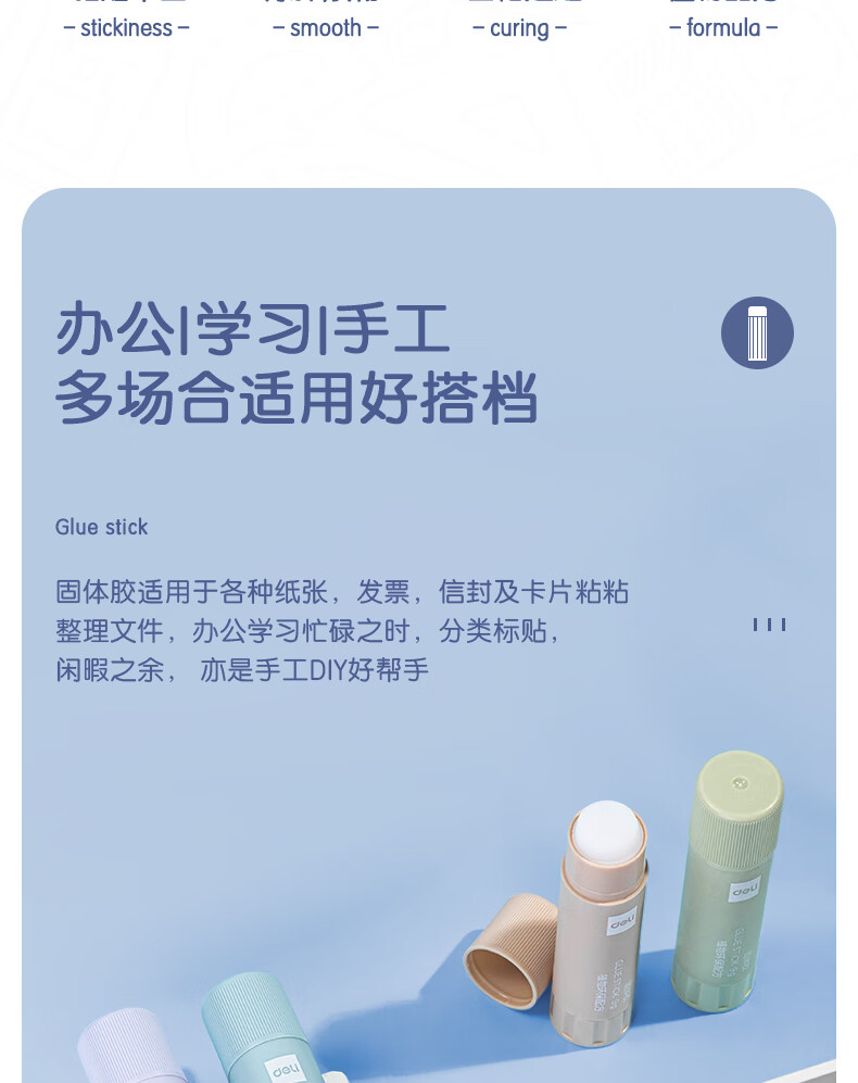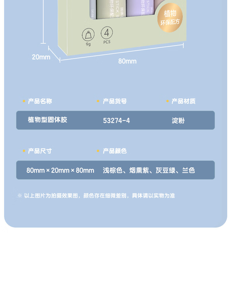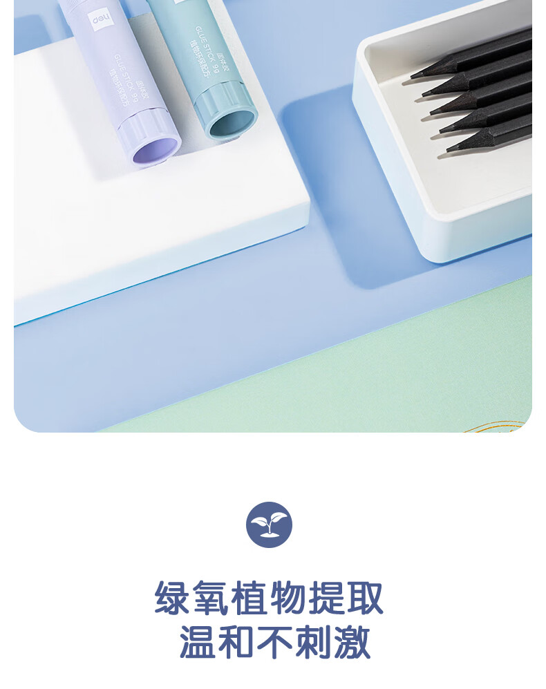 得力/deli 53274-4 胶棒/固体胶/胶水 9g植物型固体胶水 高粘度无甲醛绿色配方 高颜值学生文具 办公用品 4支/盒