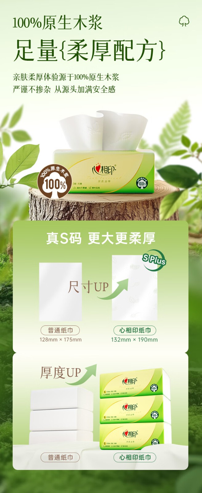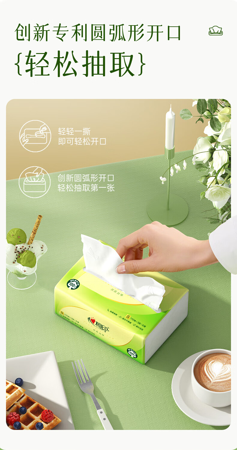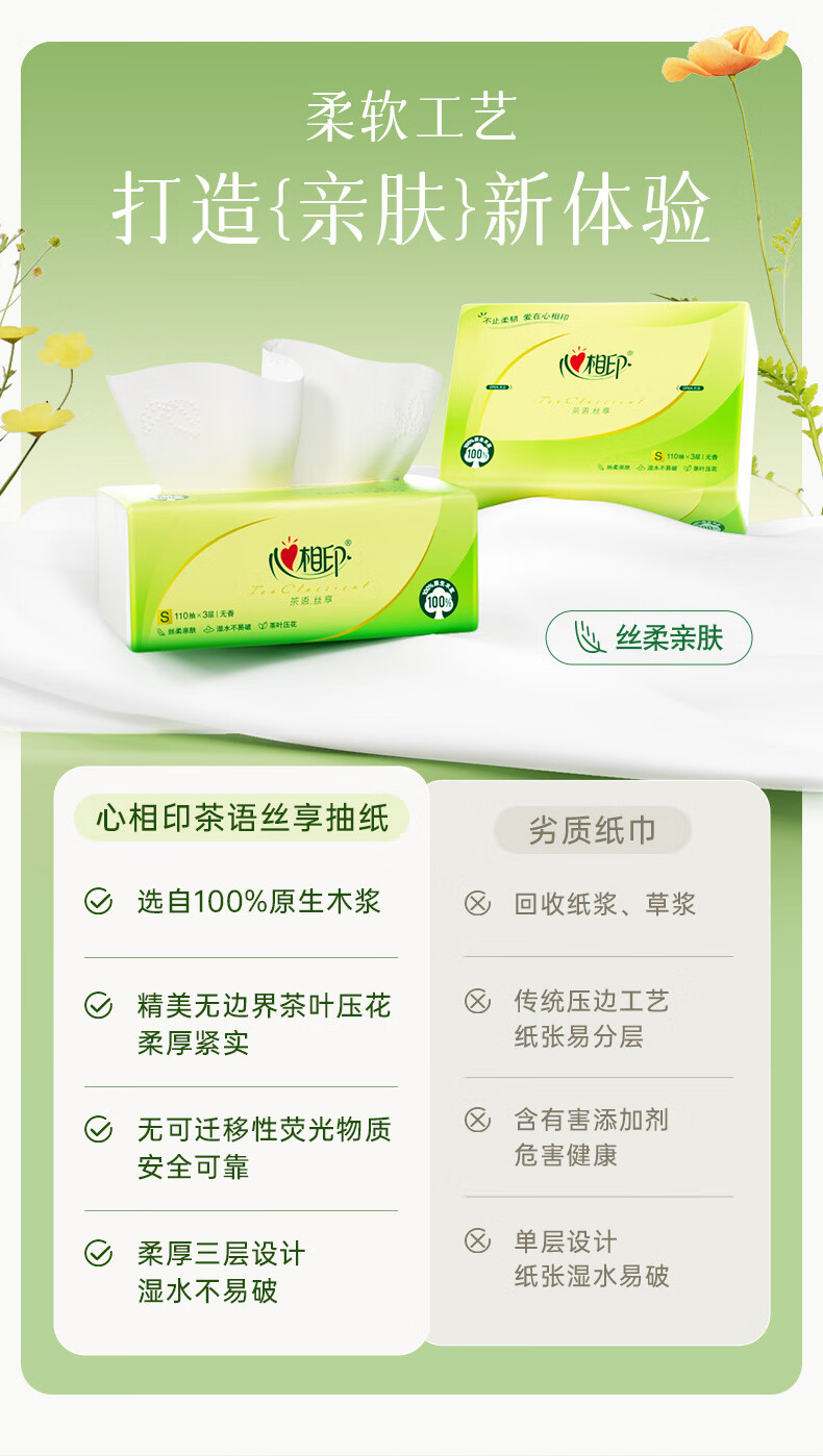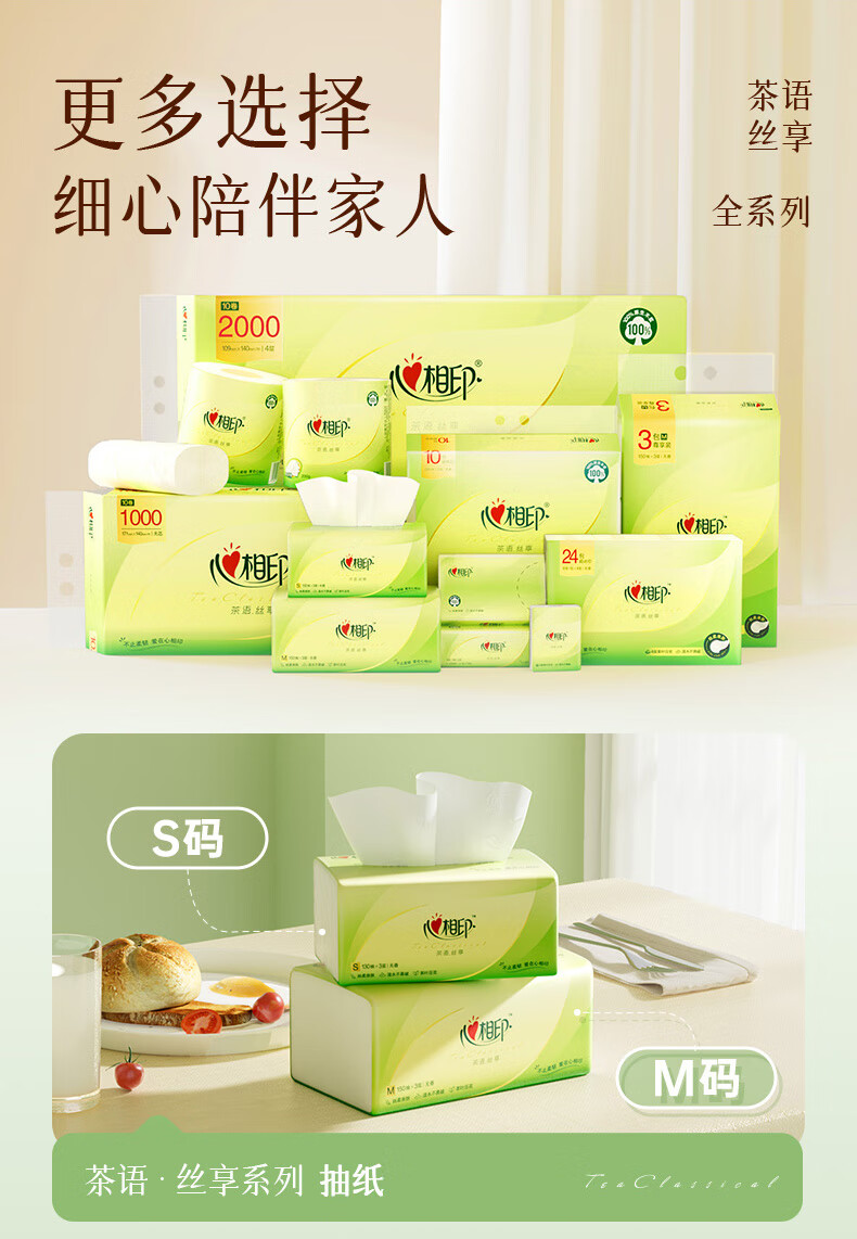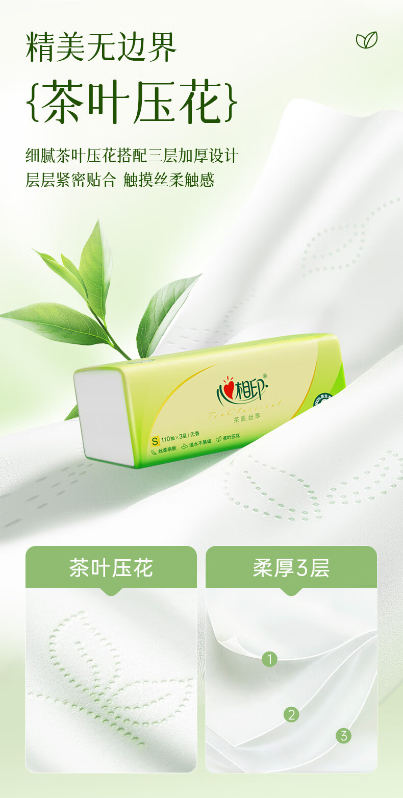 心相印/MindActUponMind DT15110 软包抽取式面纸 茶语丝享24包110抽三层塑装纸面巾 24包-箱装