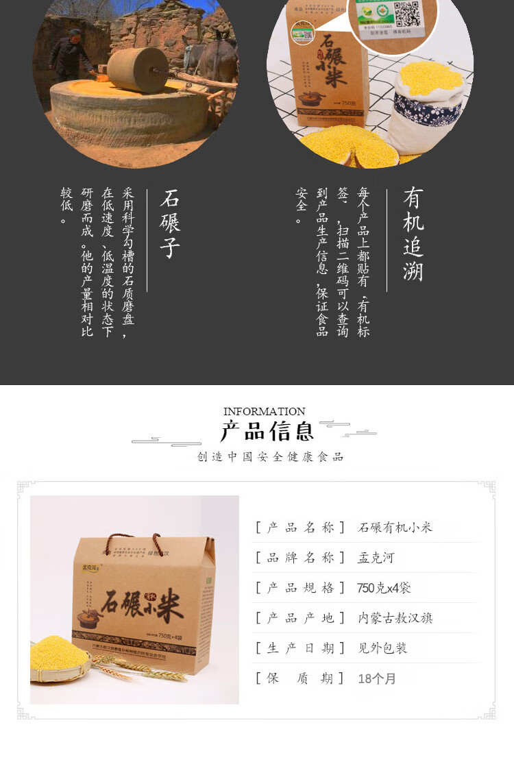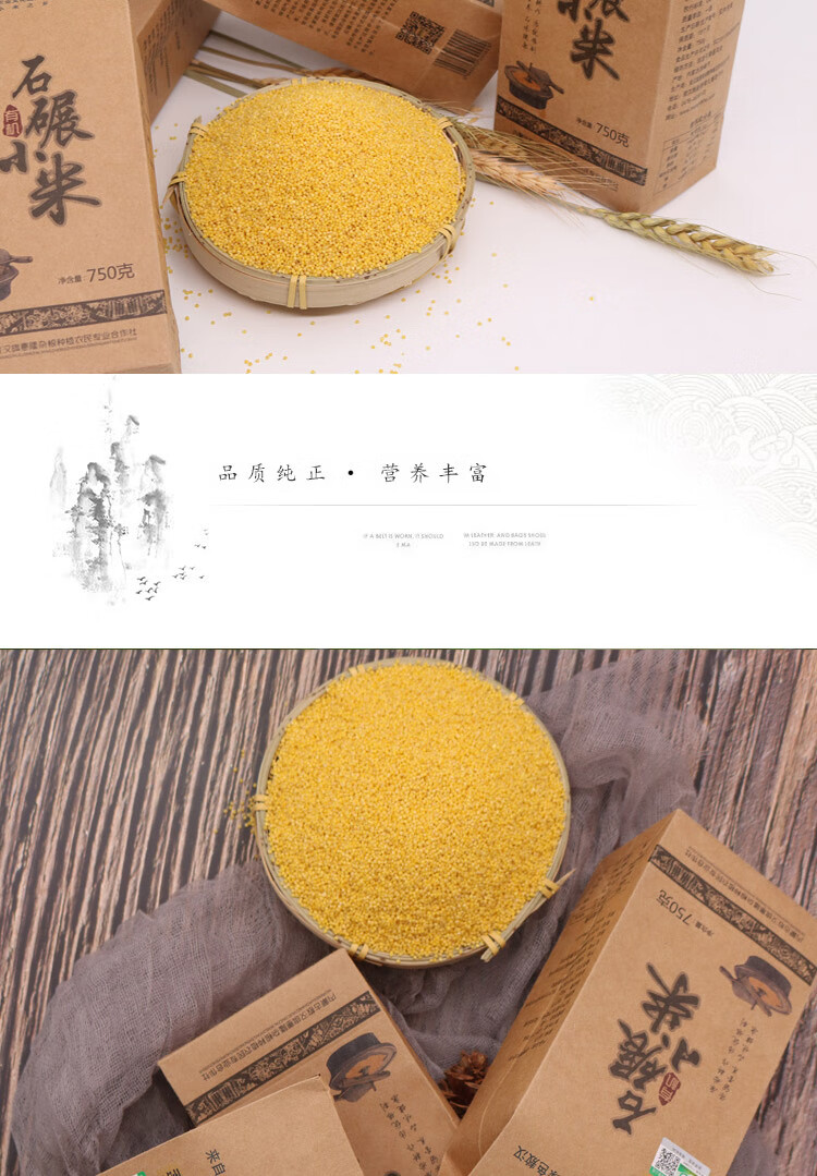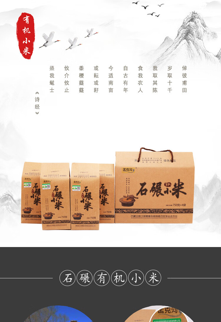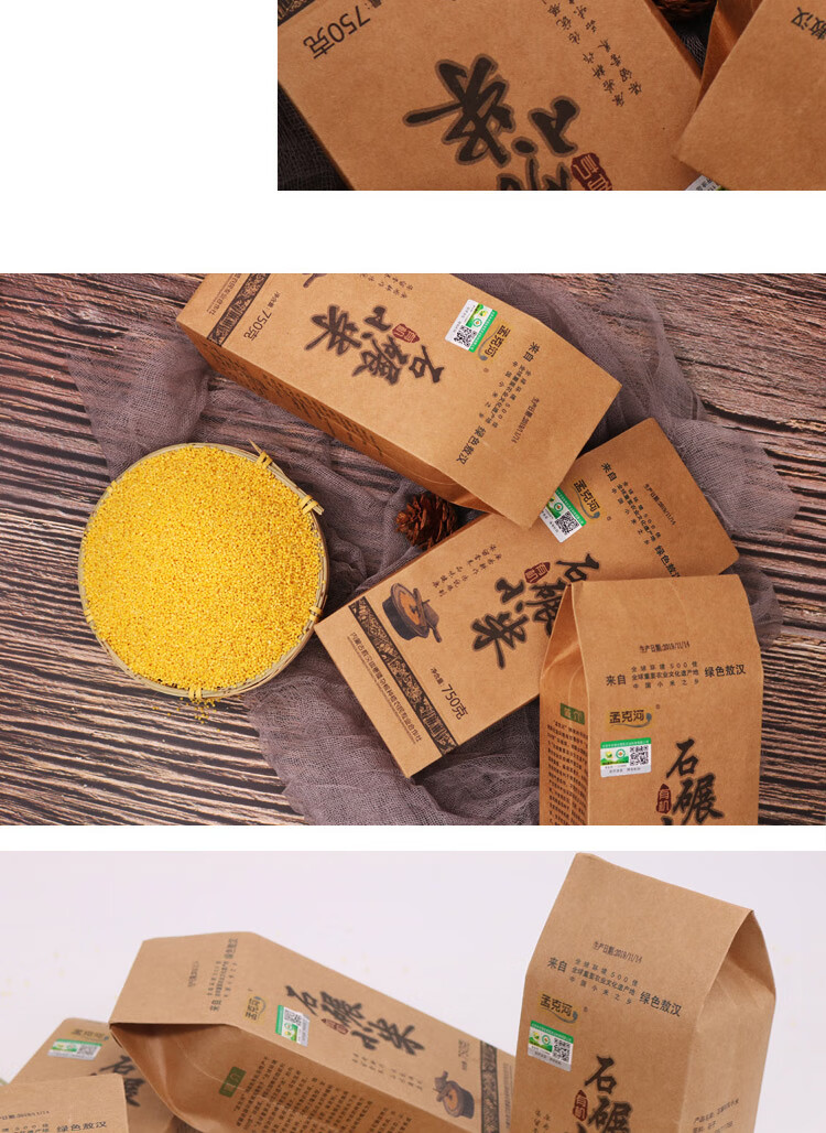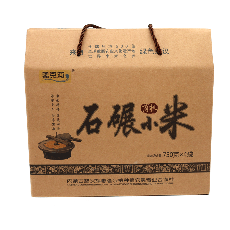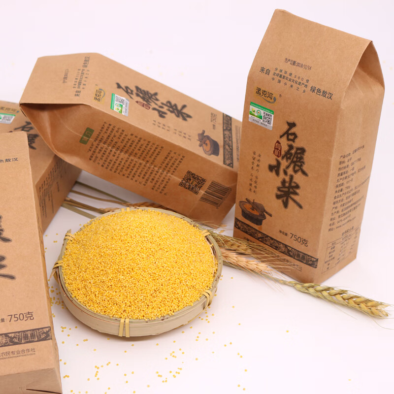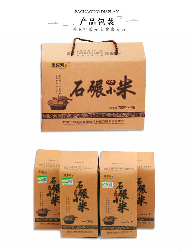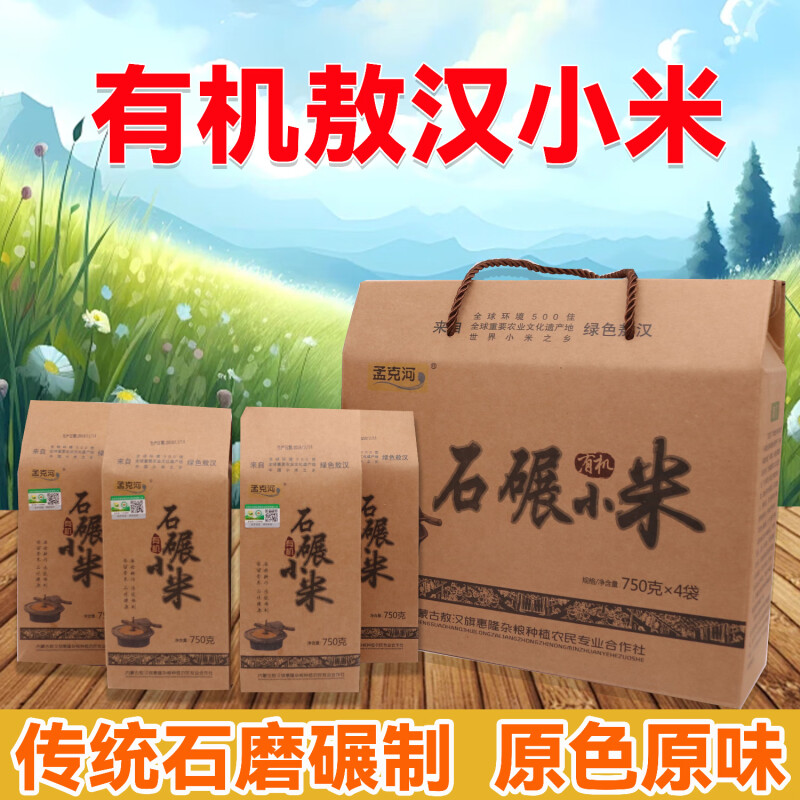 孟克河 3000 小米 有机石碾子黄小米3kg礼盒(750g*4)