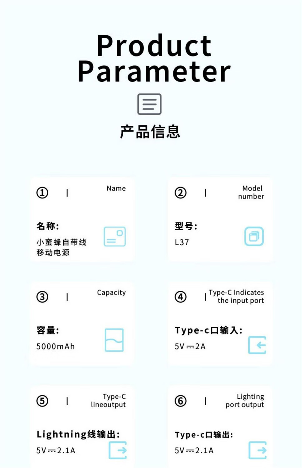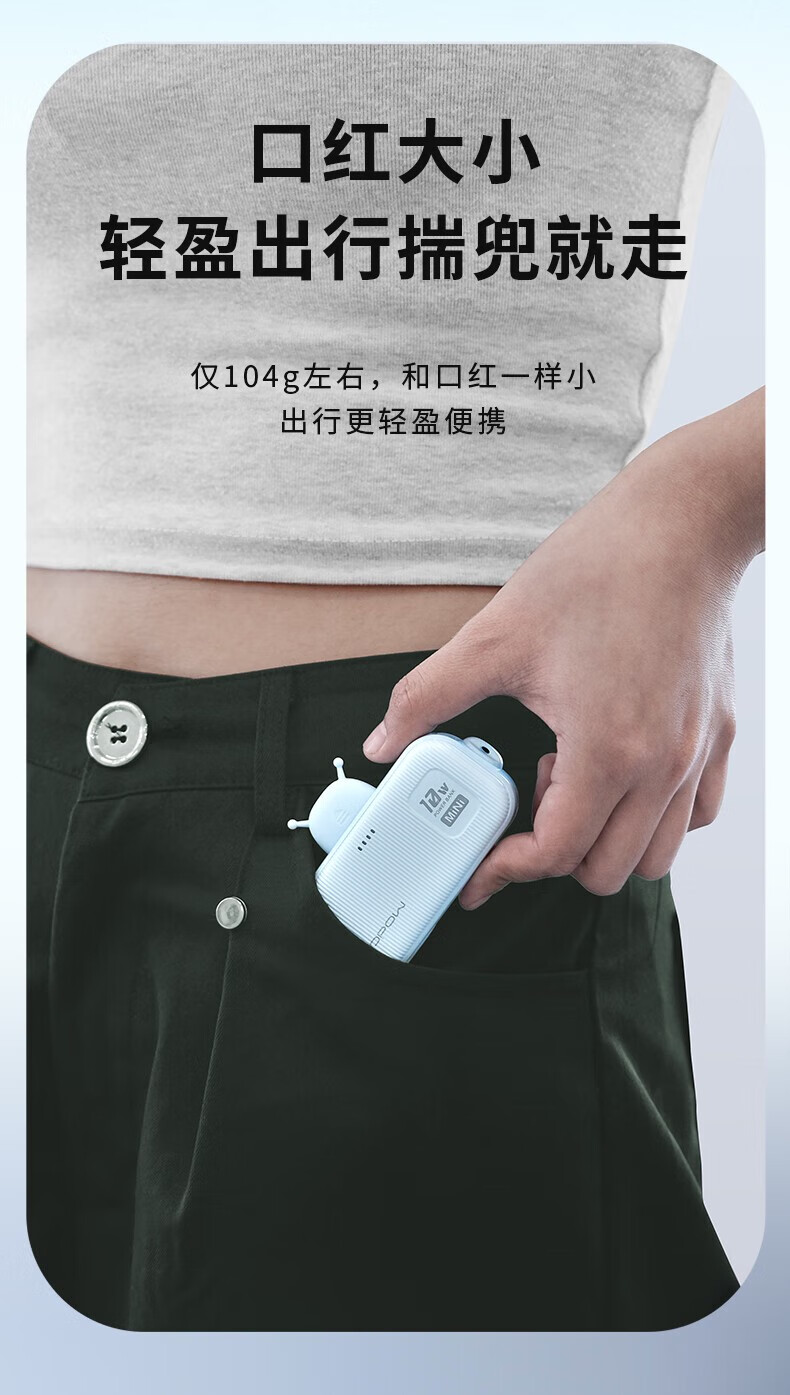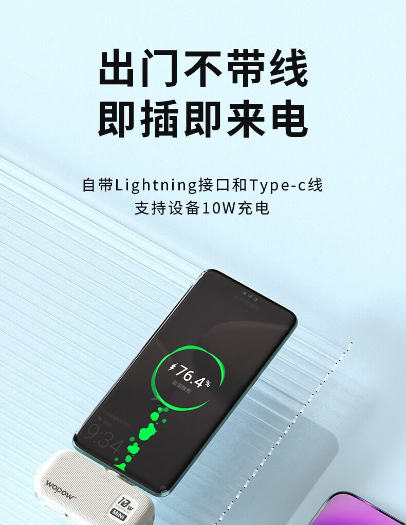 沃品/WOPOW L37 手机充电器 莫迪兰色系自带线移动电源 蓝色 5000mAh
