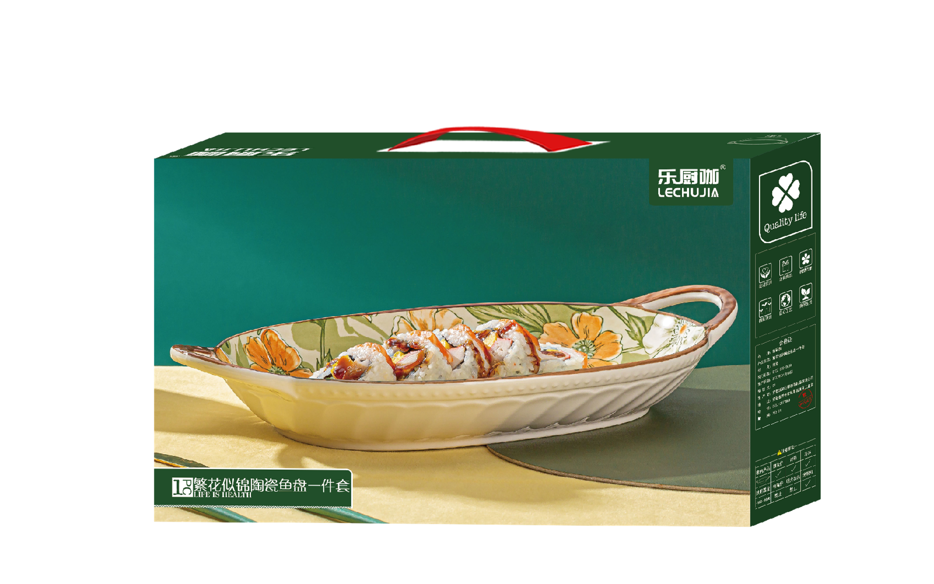 银泰/PMI YTFHSJ/L1盘 繁花似锦陶瓷鱼盘一件套