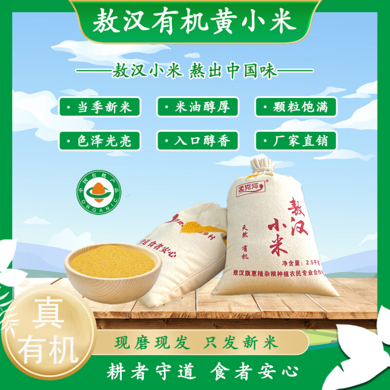 孟克河 2500 小米 帆布袋装有机敖汉黄小米2.5kg