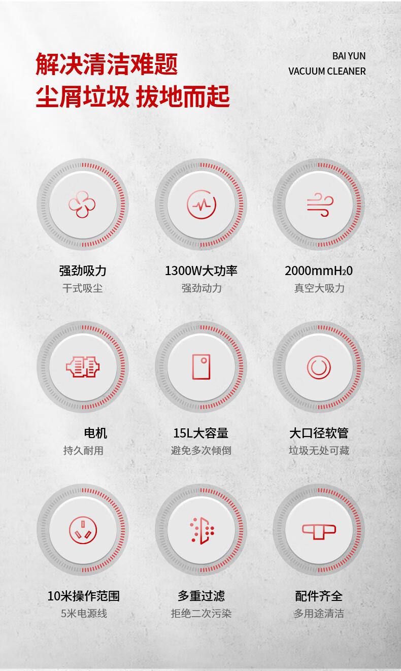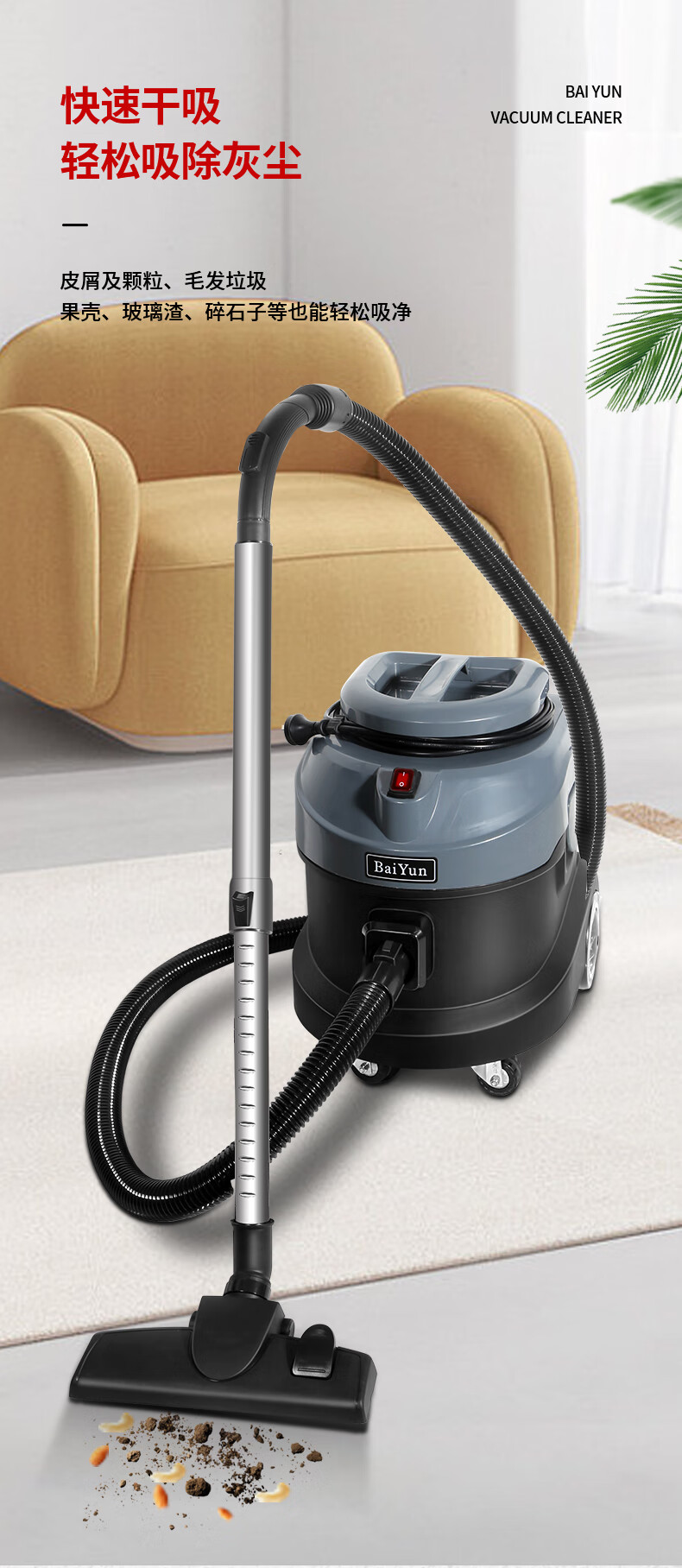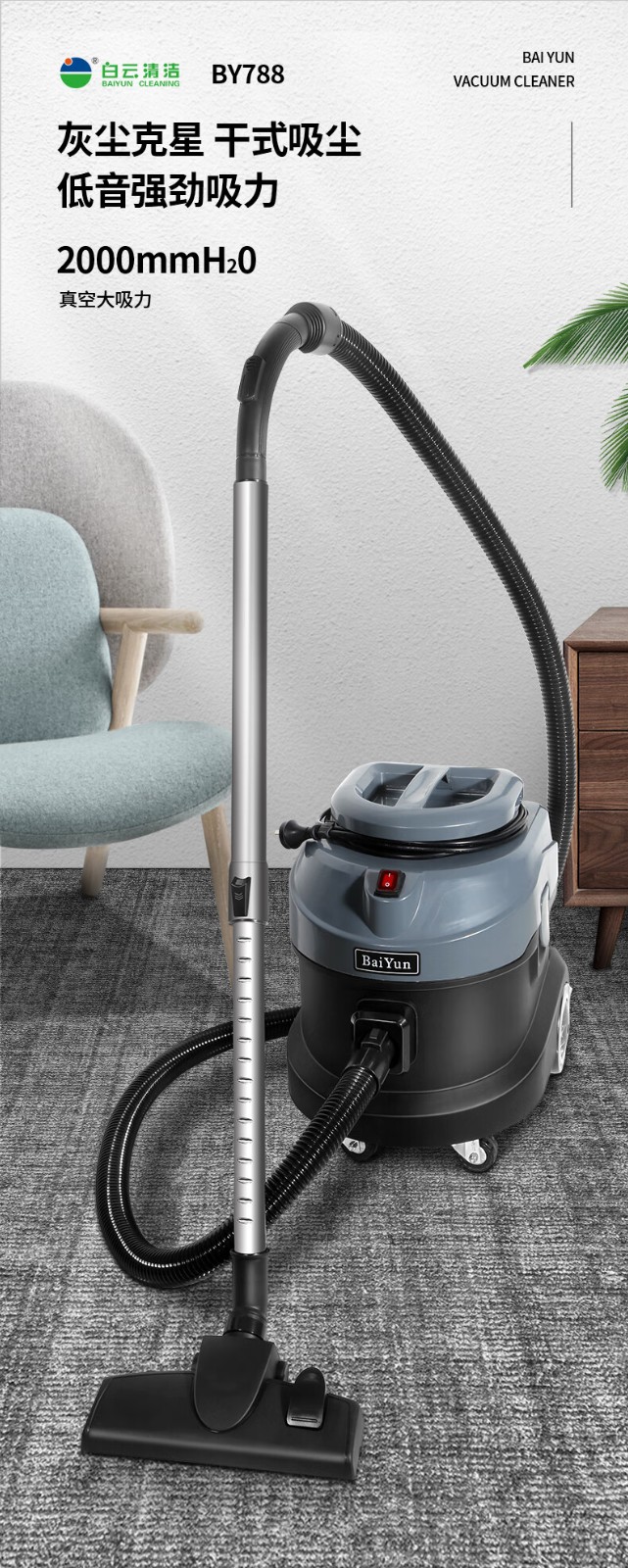 白云清洁/BAIYUNCLEANING BY788A清洗机 白云15升超静音吸尘机(旋钮调速)