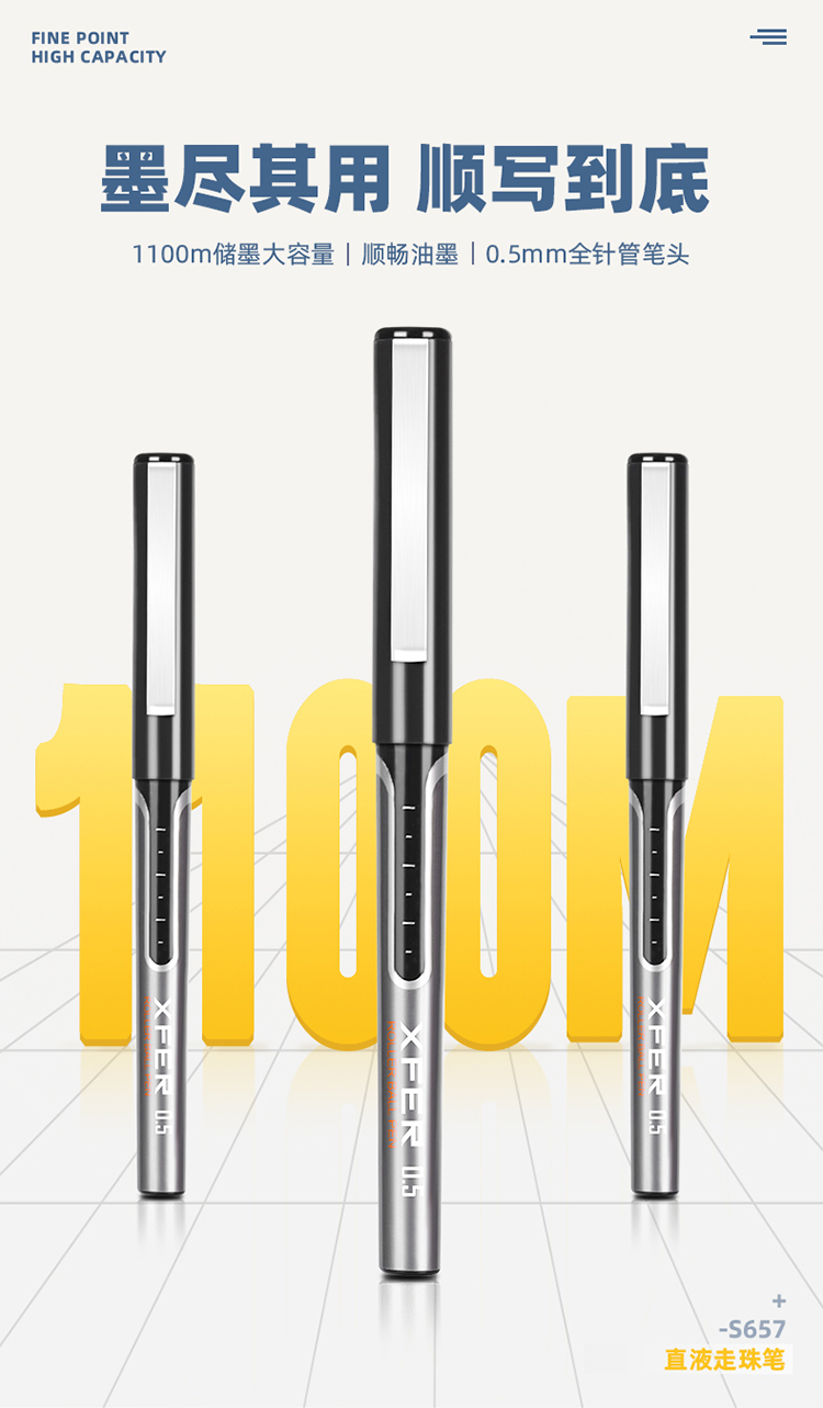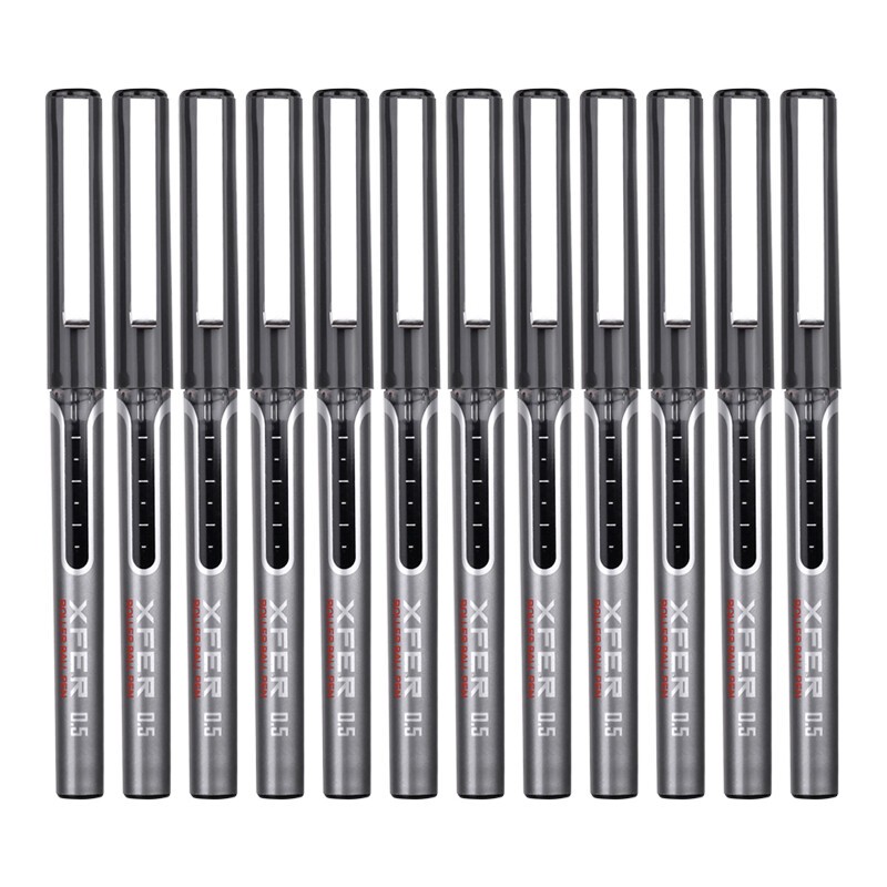 得力/deli S657 书写用笔类用具 直液笔 0.5mm全针管中性笔签字笔 学生办公走珠笔水笔 黑色 12支/盒