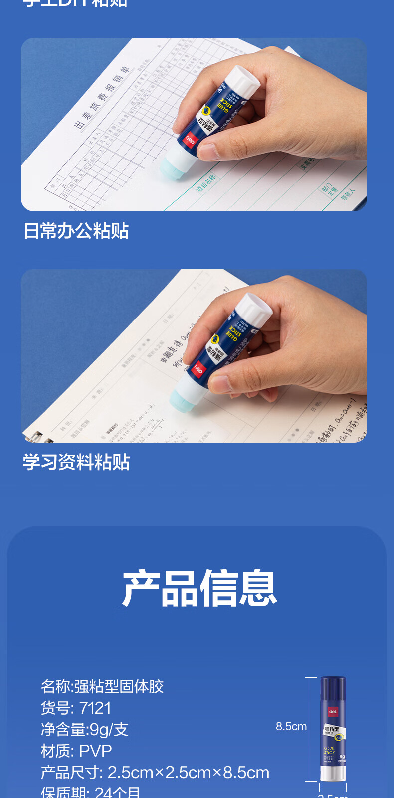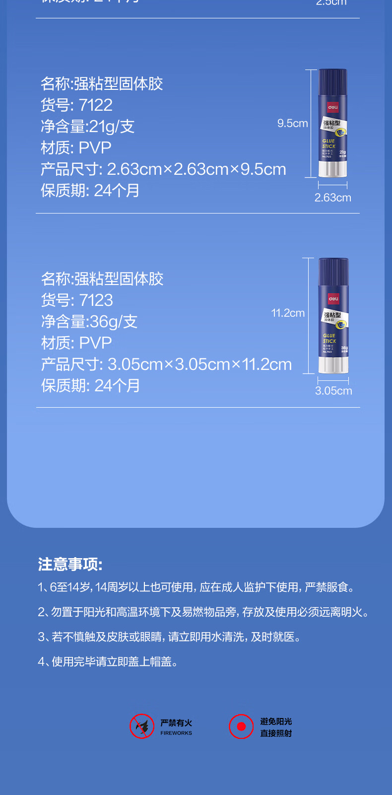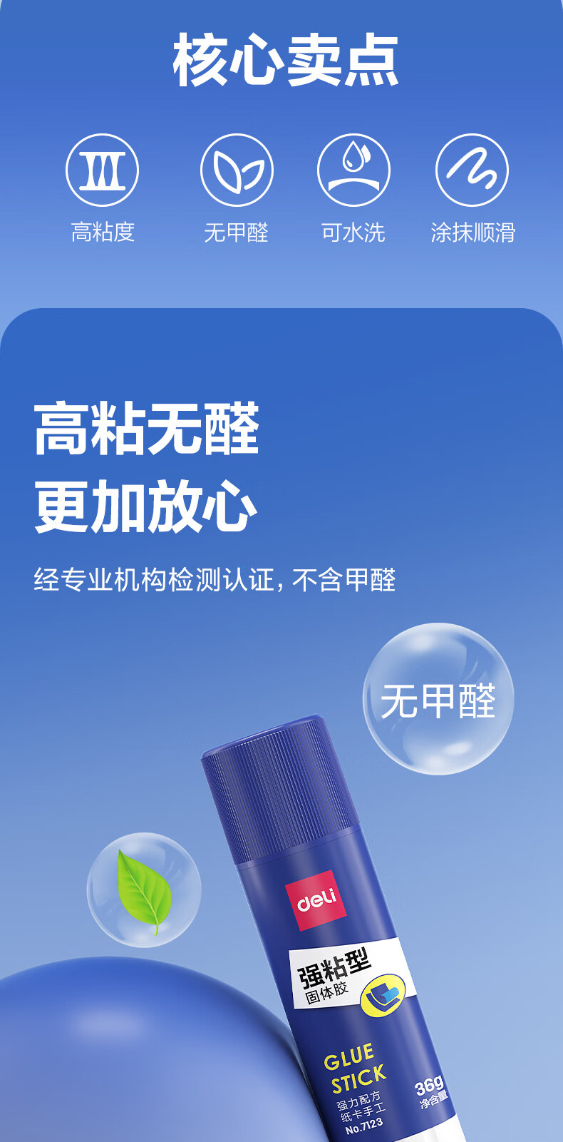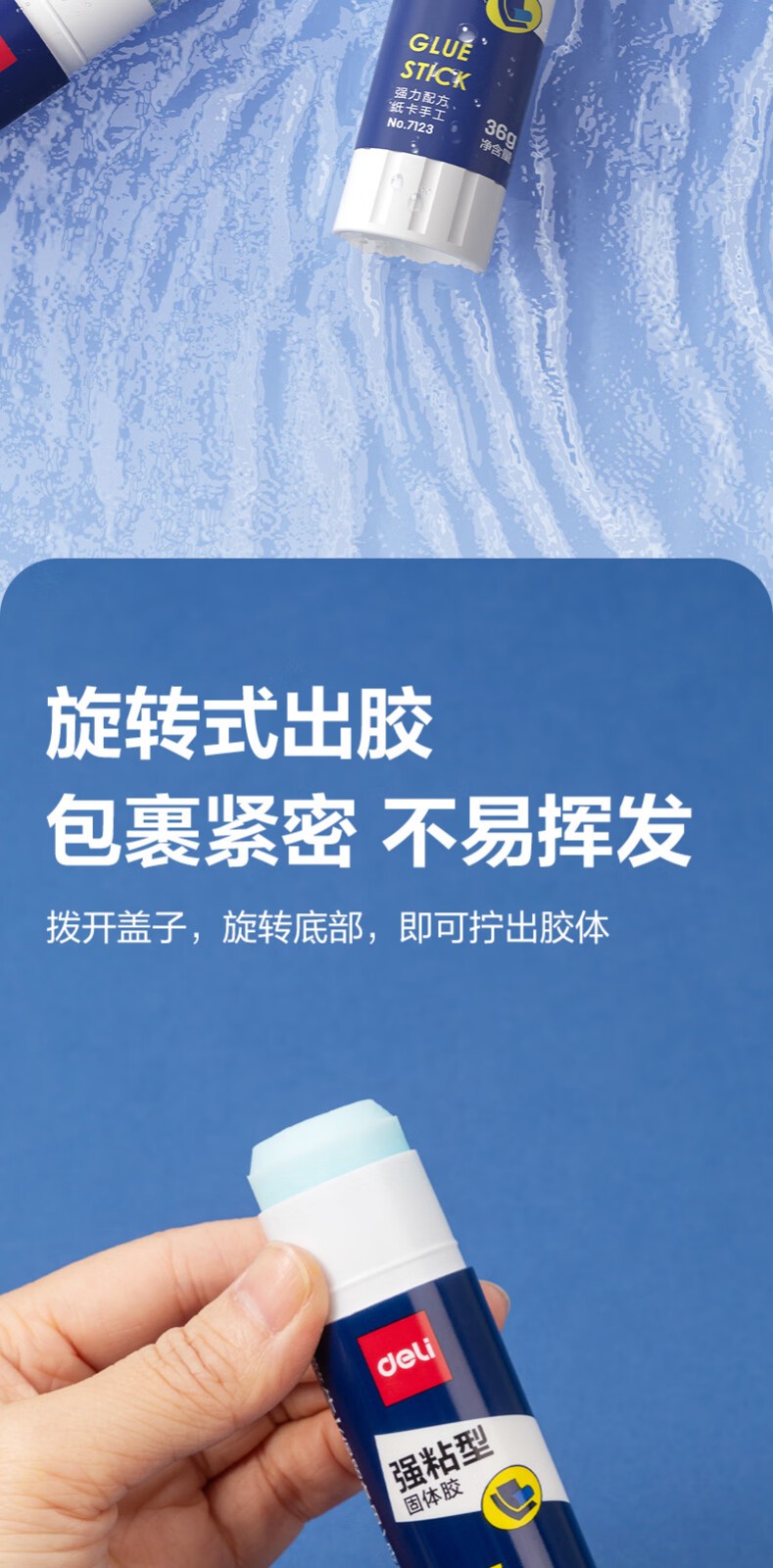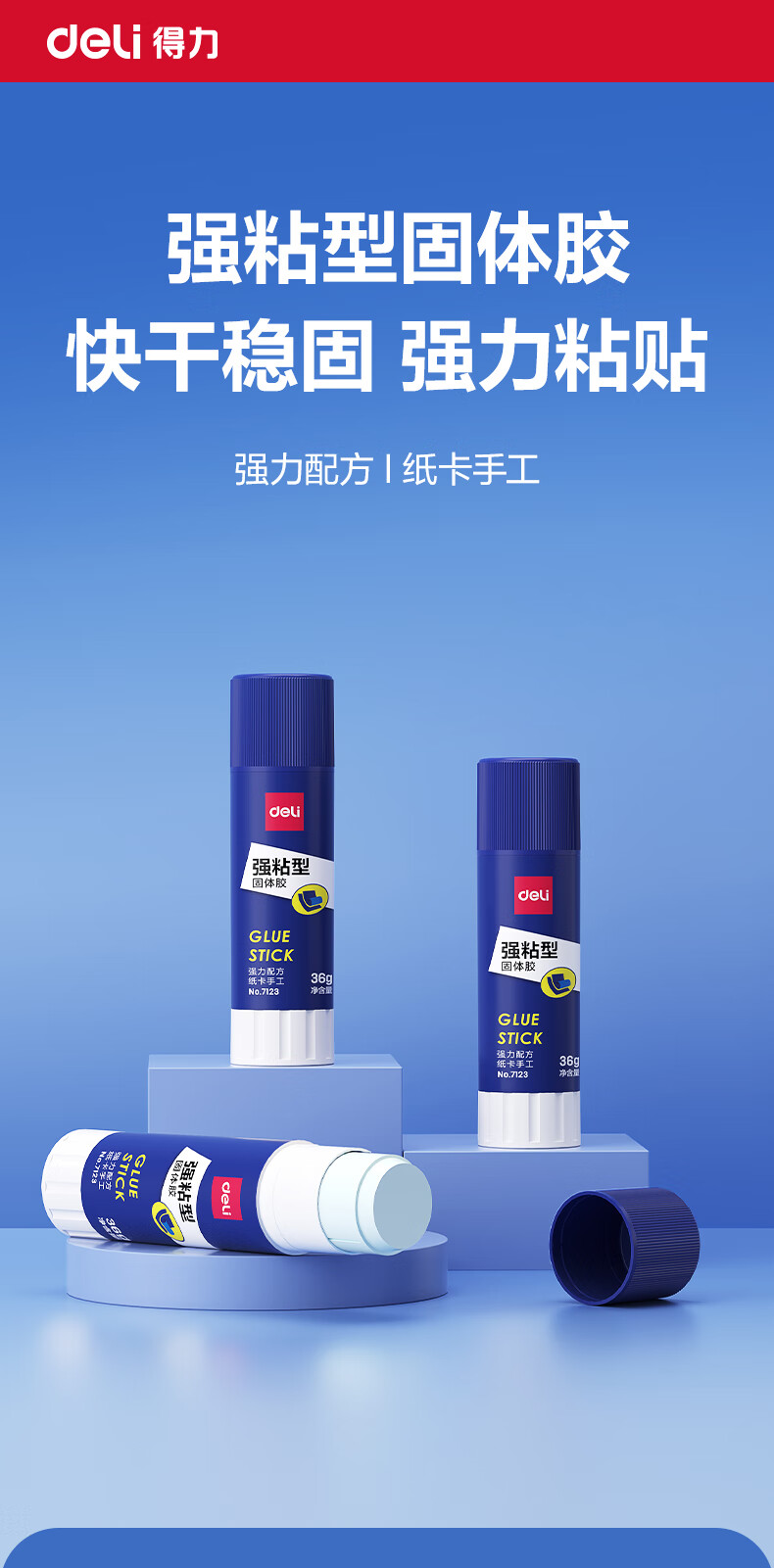 得力/deli 7123 胶棒/固体胶/胶水 36g强粘性PVP固体胶水 无甲醛配方 快干强力胶棒 学生文具 12支装
