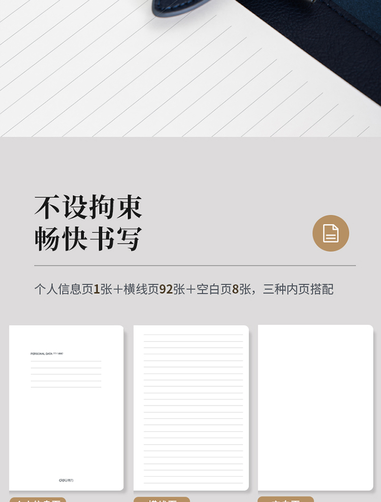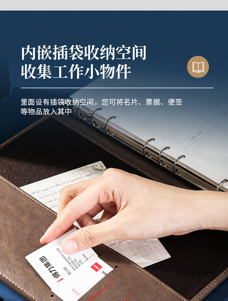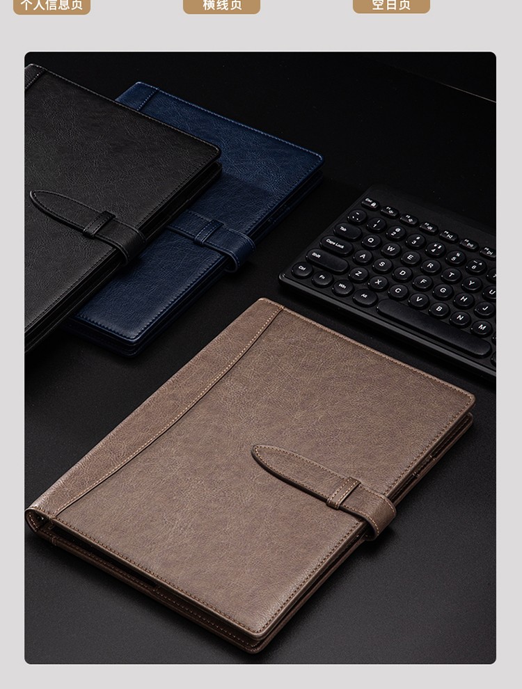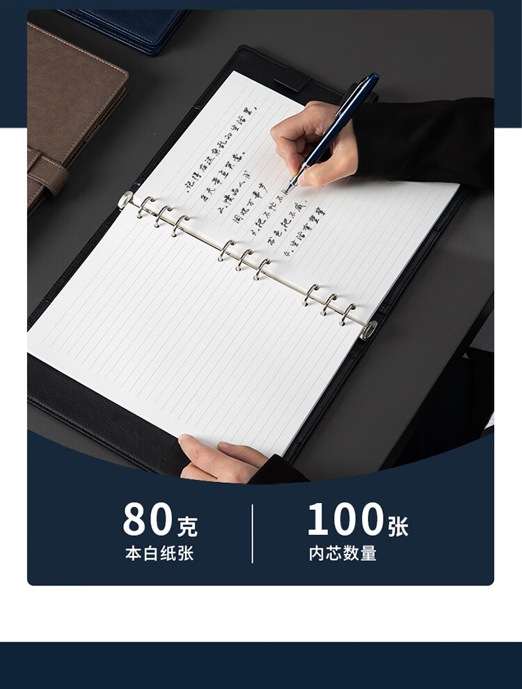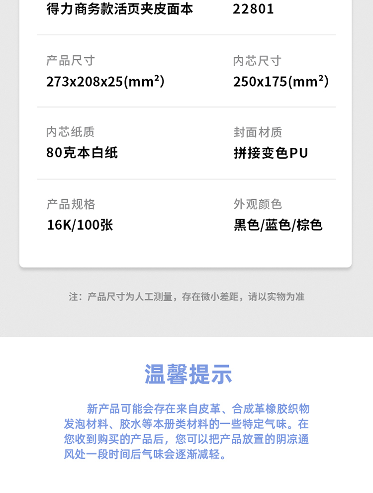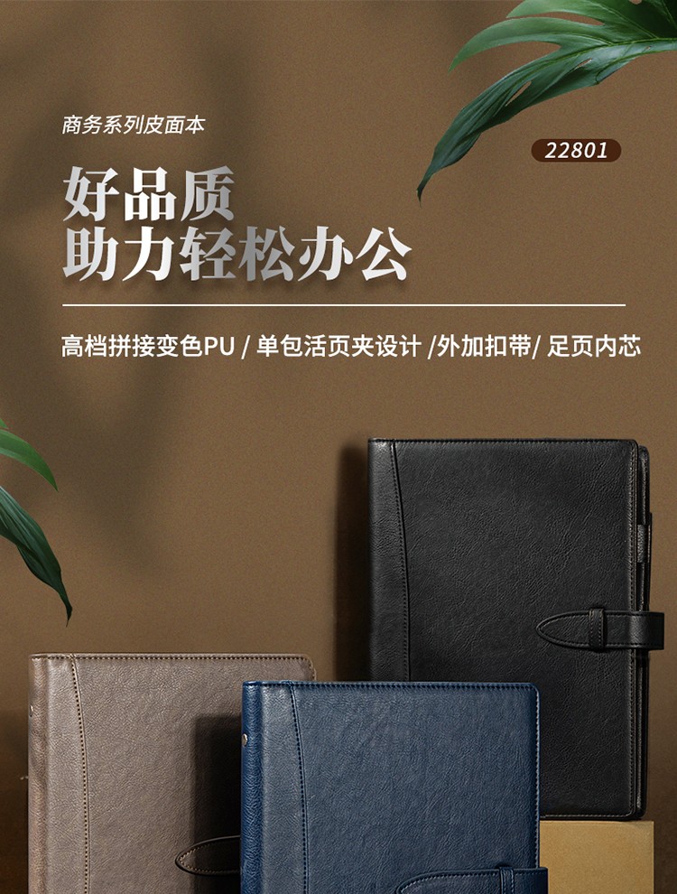 得力/deli 22801 薄本册 16K笔记本经典商务活页皮面本办公记事本日记本扣带本250mm*175mm100张黑色