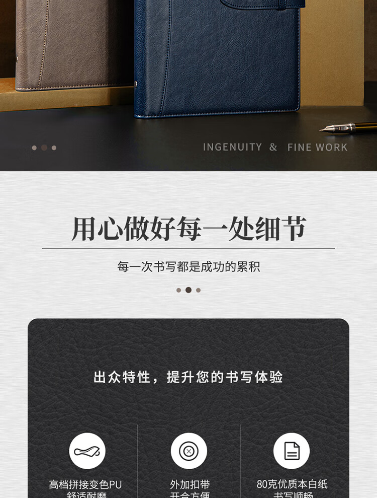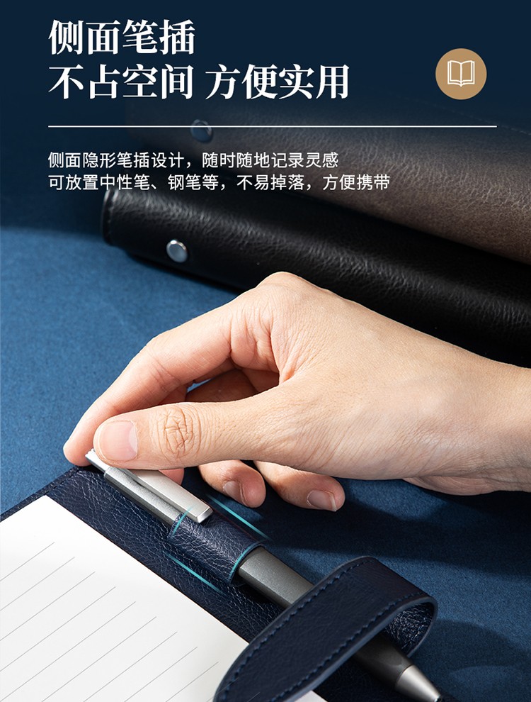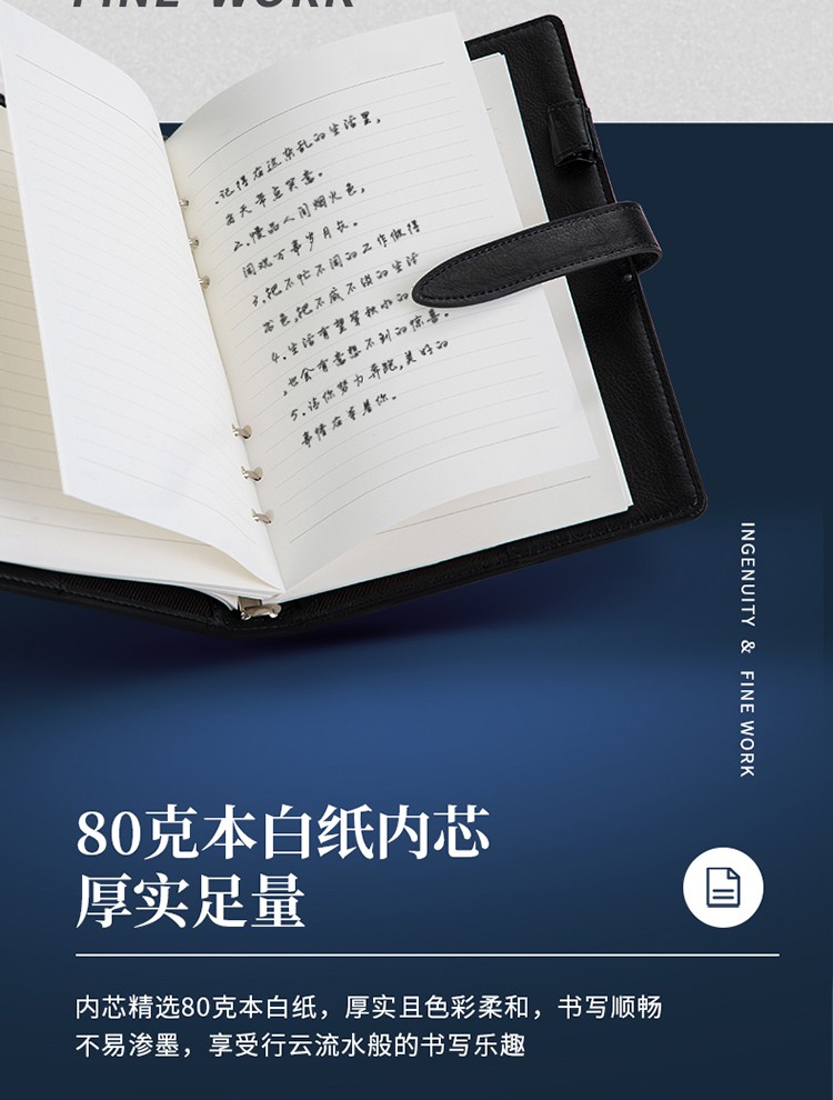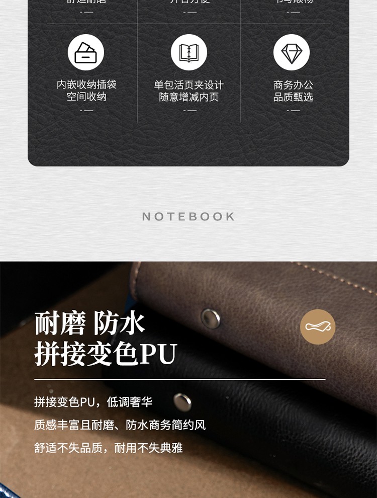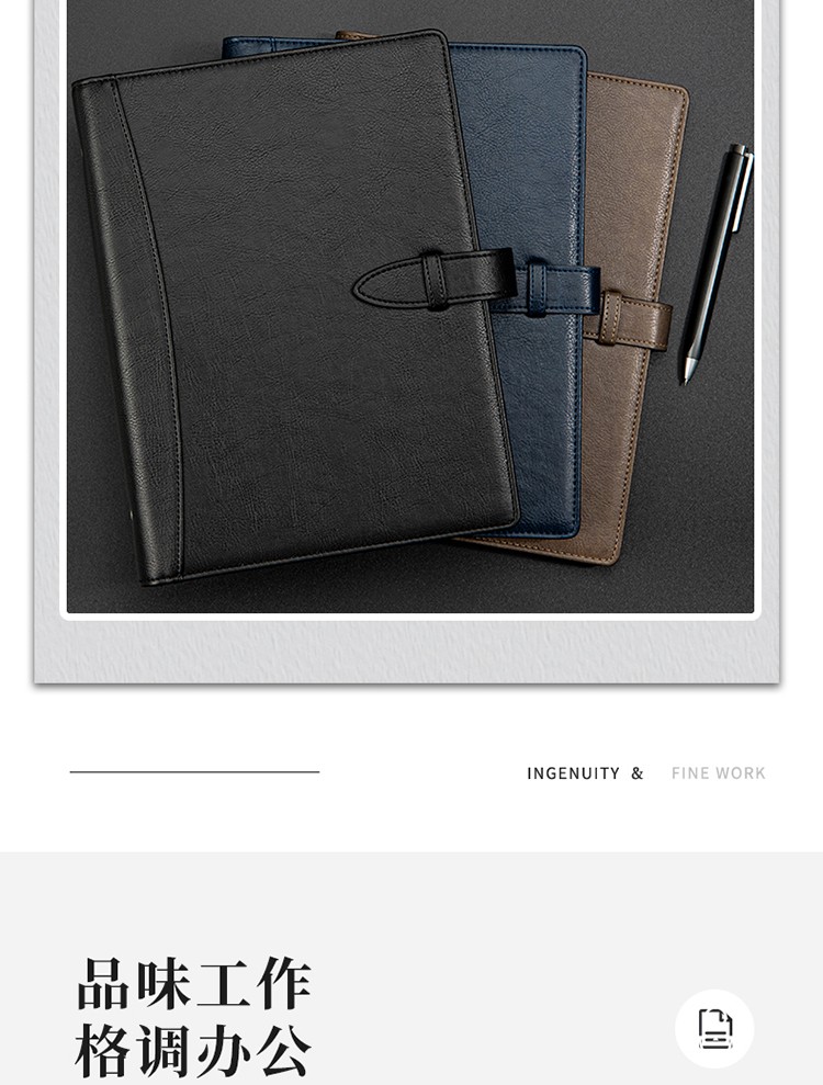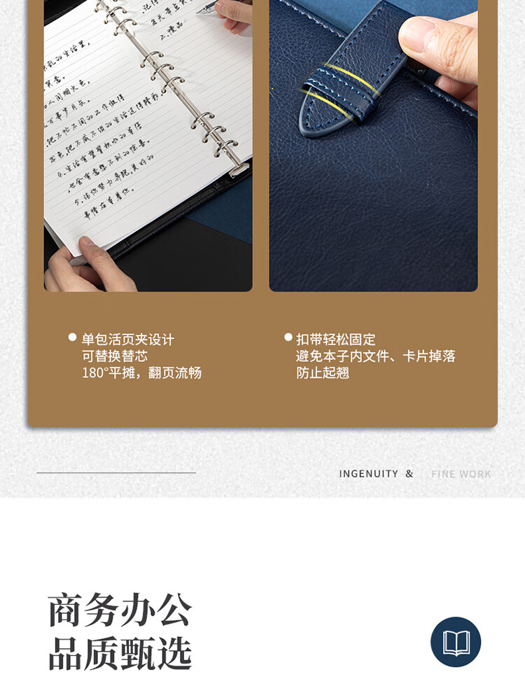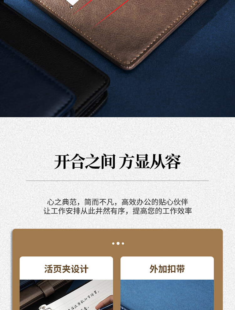 得力/deli 22801 薄本册 16K笔记本经典商务活页皮面本办公记事本日记本扣带本250mm*175mm100张黑色