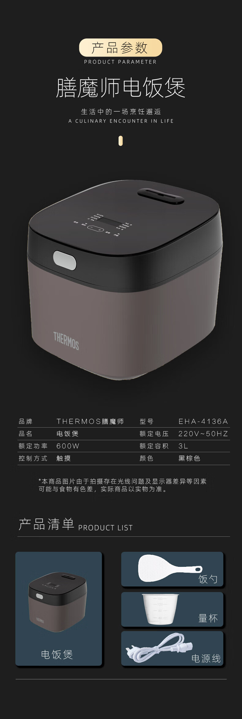 膳魔师/THERMOS EHA-4136A电饭煲/电压力锅 智能电饭煲家用3L