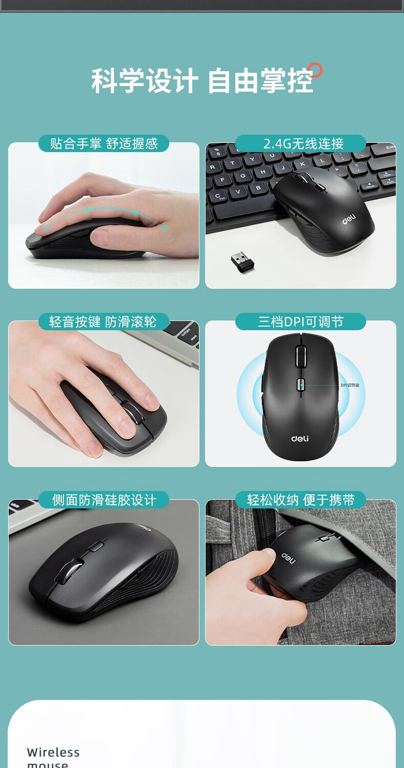 得力/deli 3715 鼠标 USB无线鼠标人体工学家用有线鼠标 【有线鼠标】实用便捷