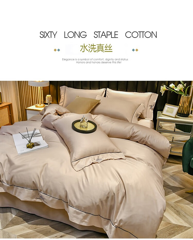 啄木鸟 ZMN-SXZS-01 被子/被单 水洗真丝绣花四件套-卡其