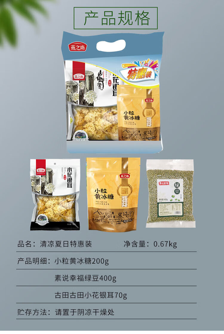 燕之坊 1120 绿豆 防暑降温送清凉礼包夏日清凉礼盒杂粮礼盒 夏凉礼盒1120g