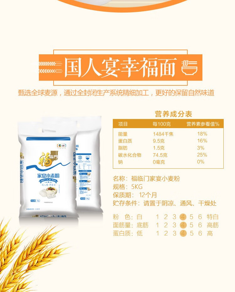 福临门 6514 小麦面粉 家宴小麦粉5kg