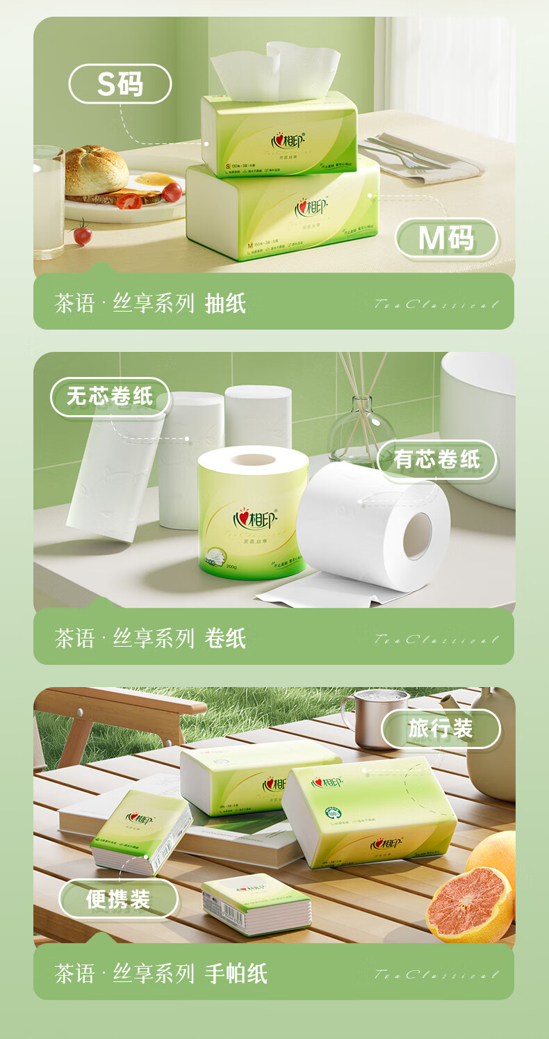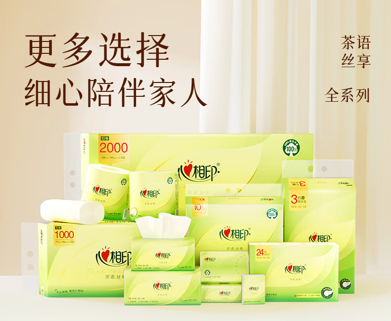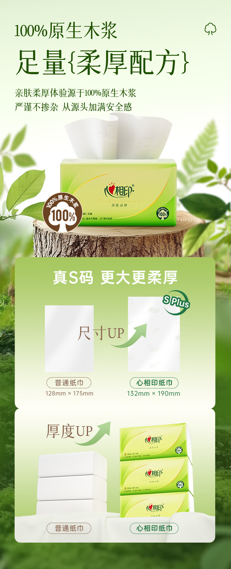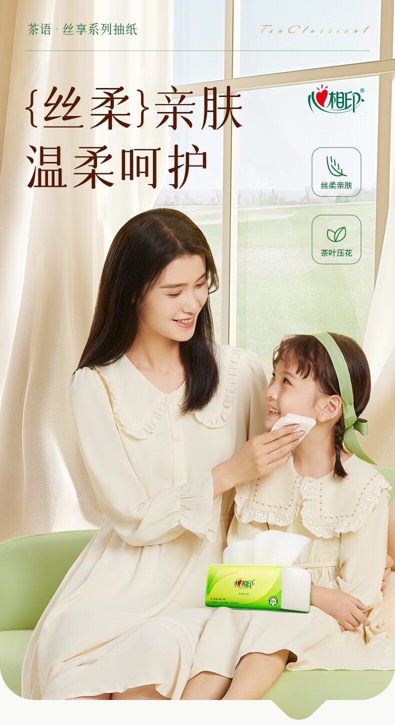 心相印/MindActUponMind DT15150 软包抽取式面纸 心相印茶语丝享系列150抽*24包三层塑装纸面巾